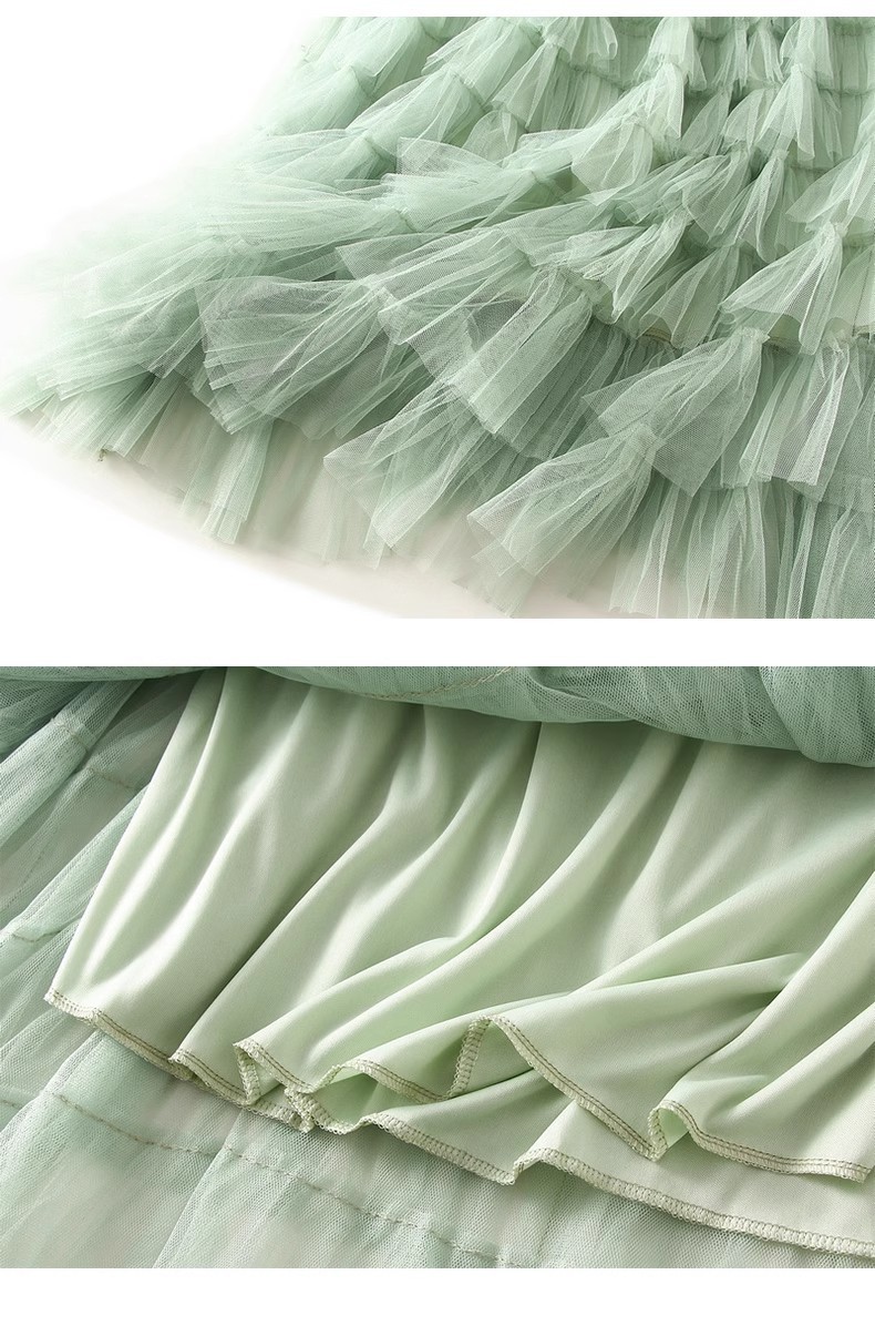 새로운 스타일의 케이크 스커트 메쉬 스커트 여성의 봄과 가을 우아한 베일 스커트 긴 높은 허리 퍼피 스커트 주름 긴 스커트스토어 가기
