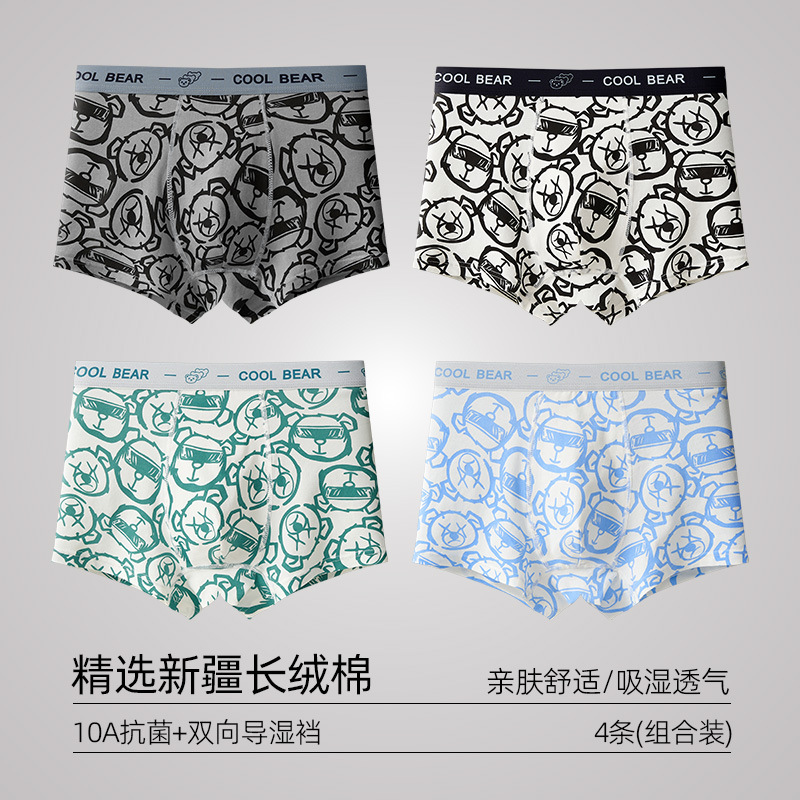 청소년용 순면 A급 면 10A 항균 남아용 발달기 15-18세 사각 팬티스토어 가기