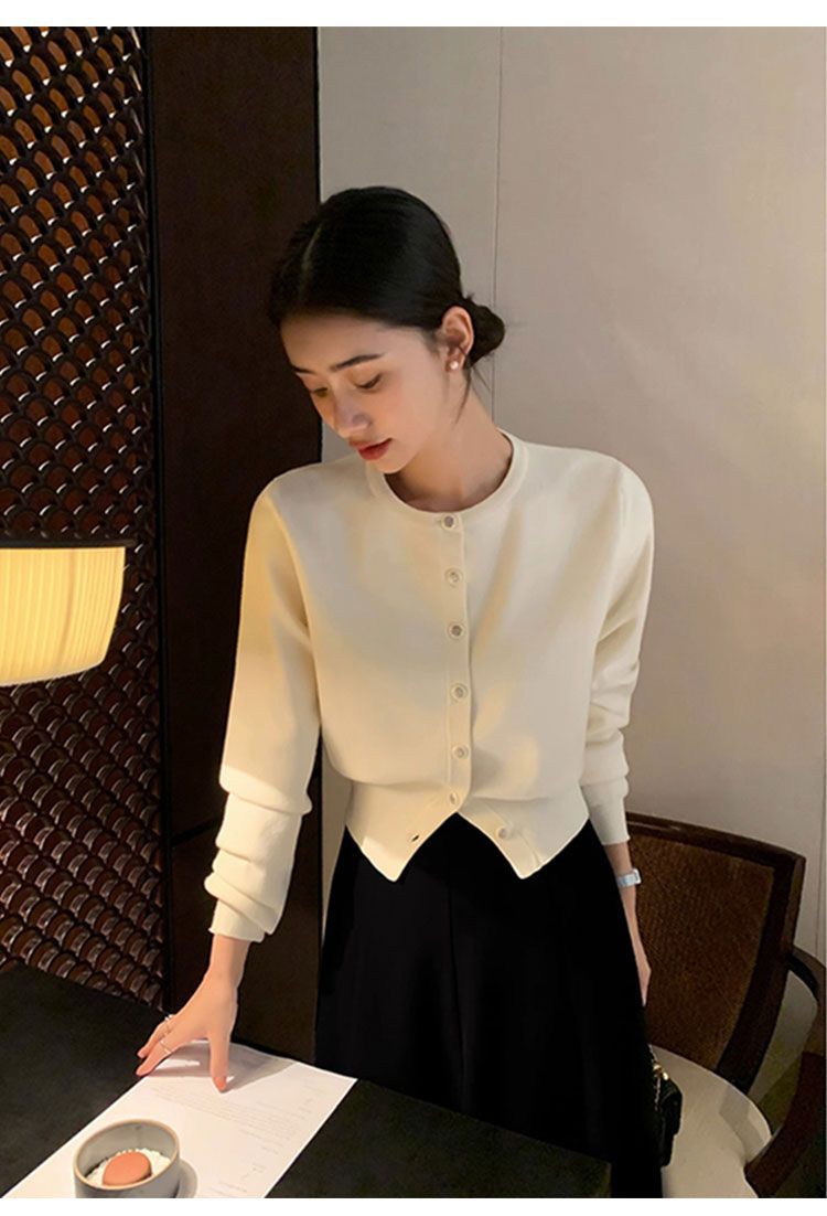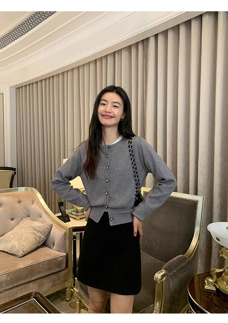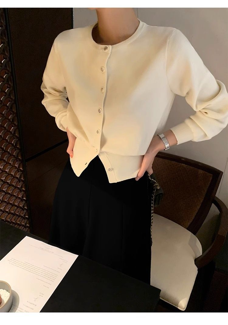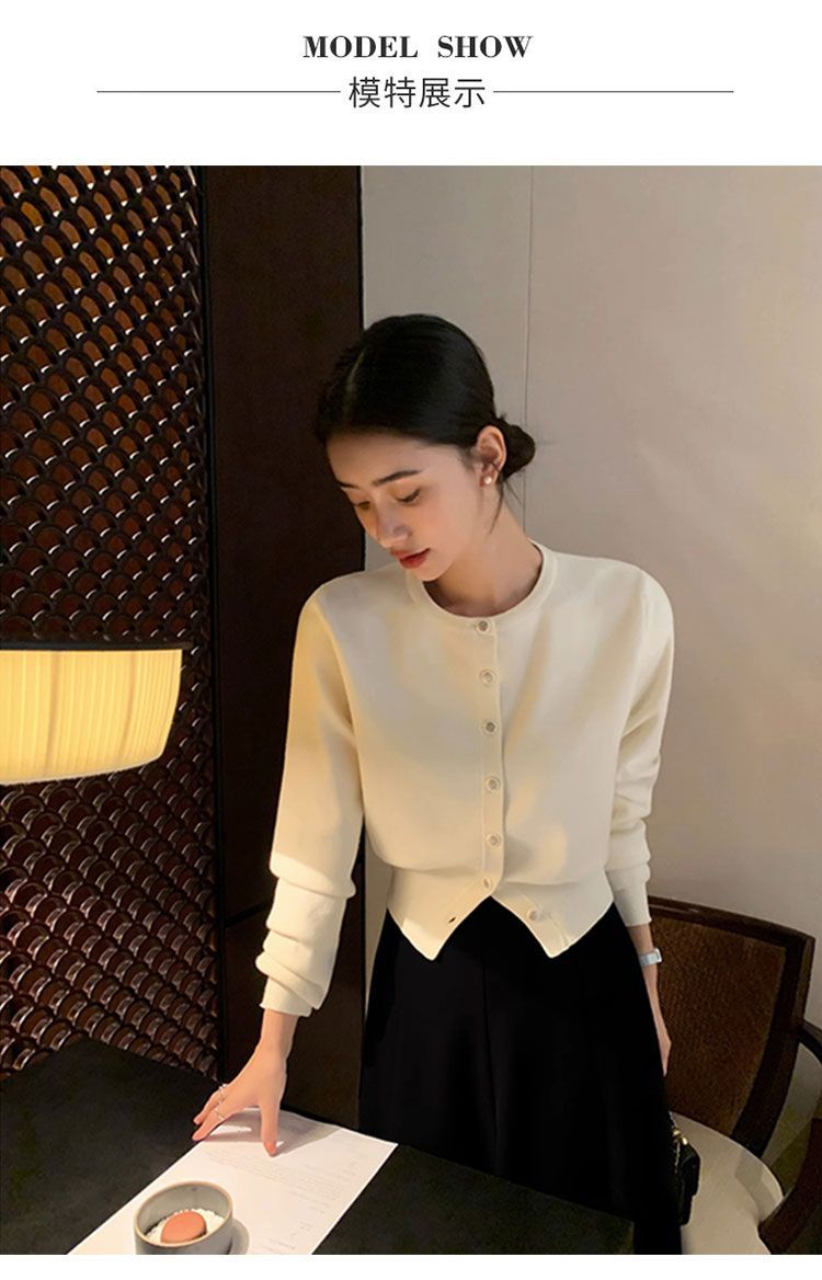 서양식 레트로 심플 올 매치 라운드 넥 니트 카디건 여자 봄 한국식 캐주얼 루즈 아우터 쇼트 탑 트렌디스토어 가기
