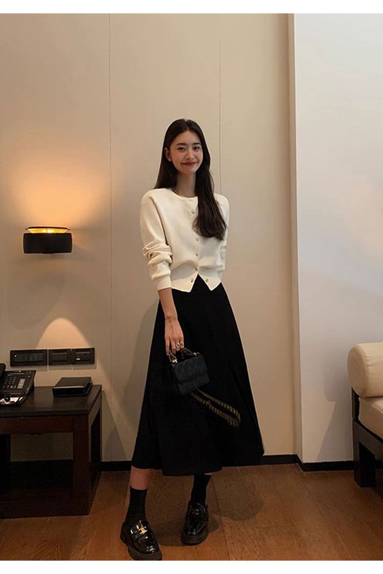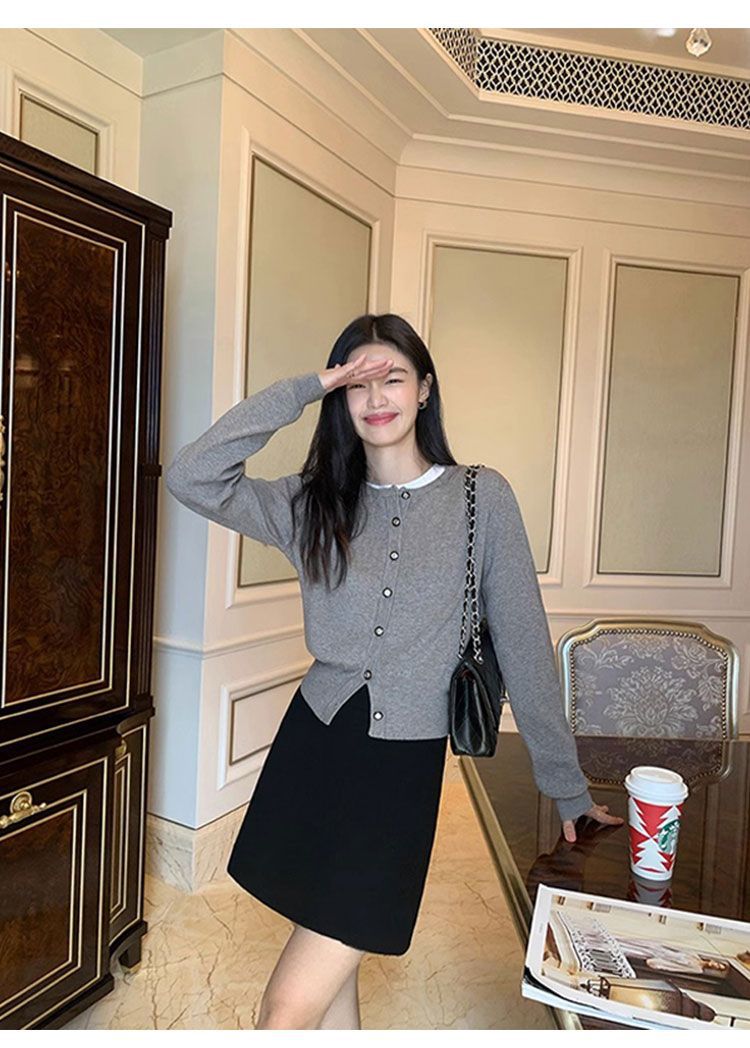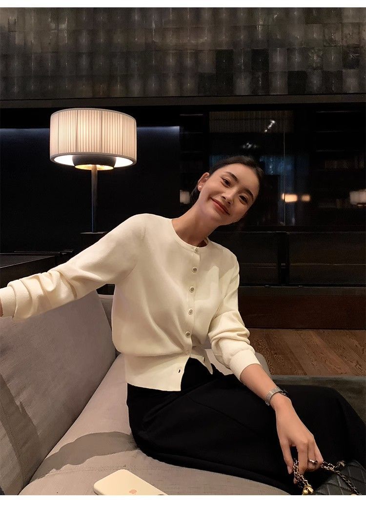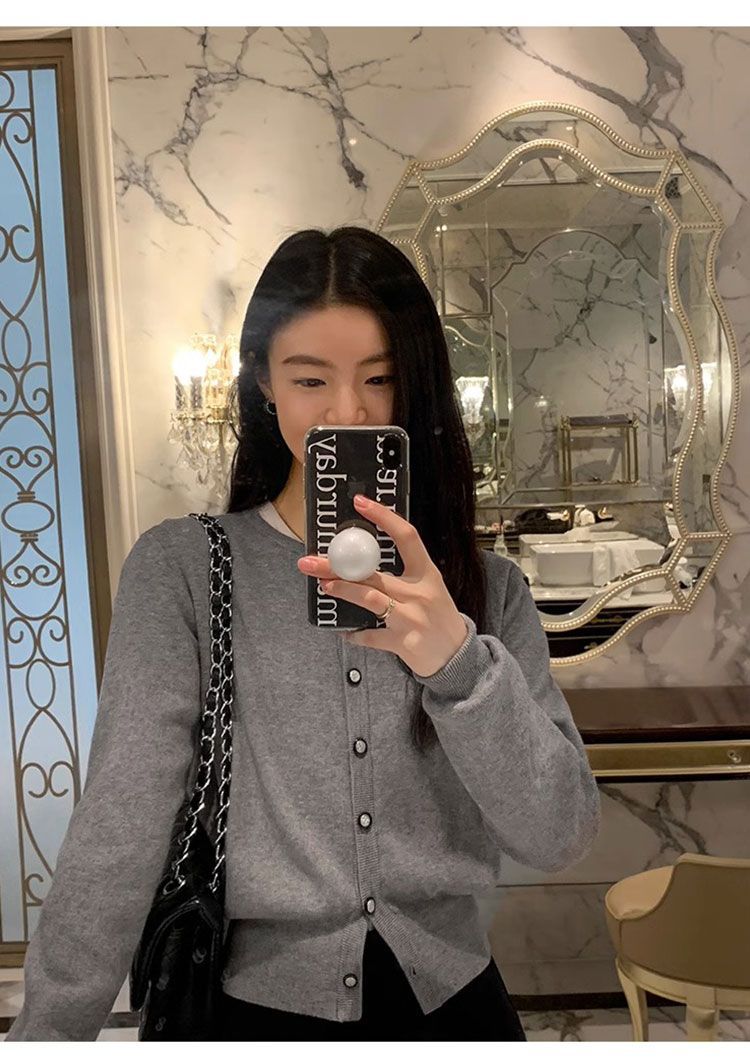 서양식 레트로 심플 올 매치 라운드 넥 니트 카디건 여자 봄 한국식 캐주얼 루즈 아우터 쇼트 탑 트렌디스토어 가기
