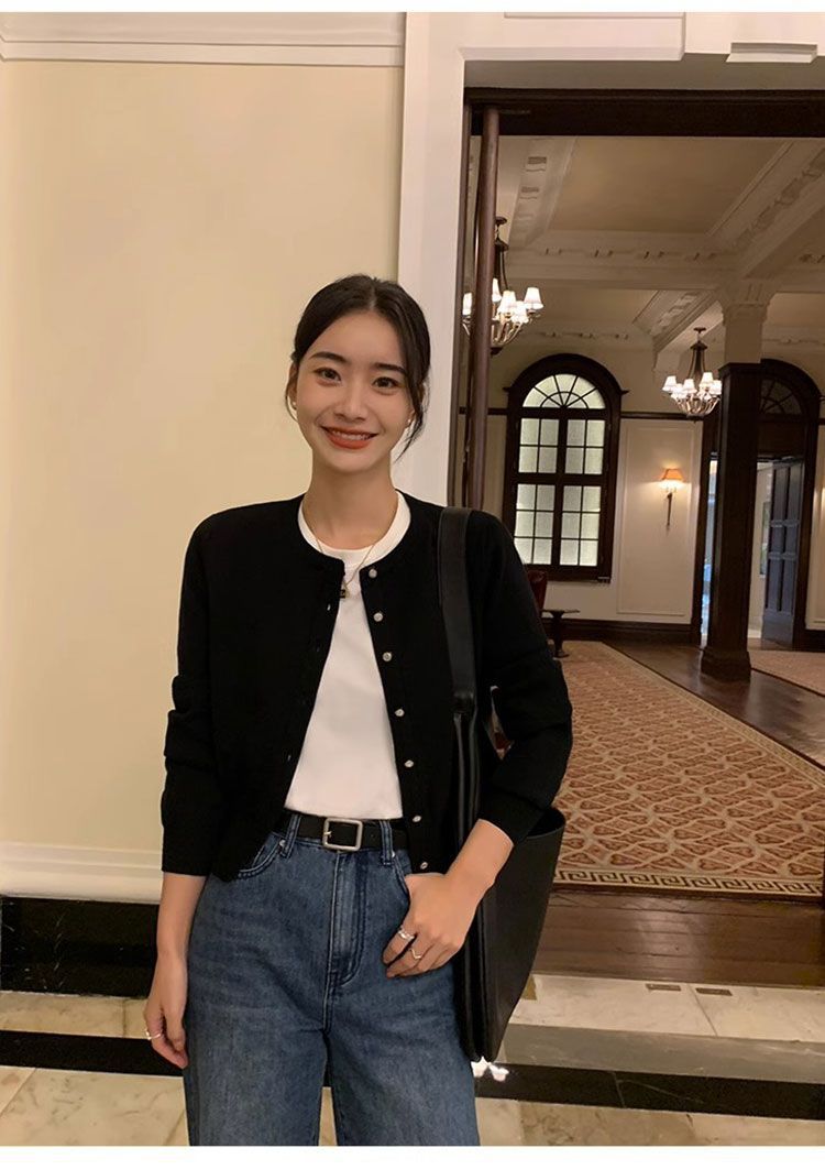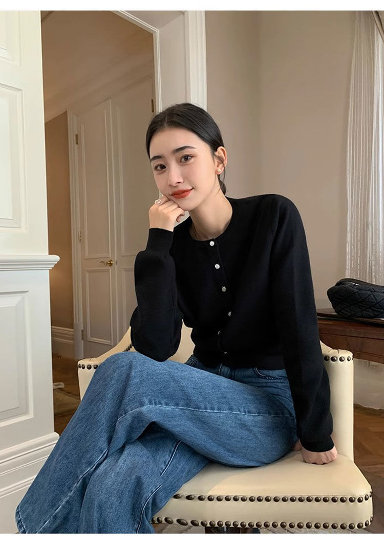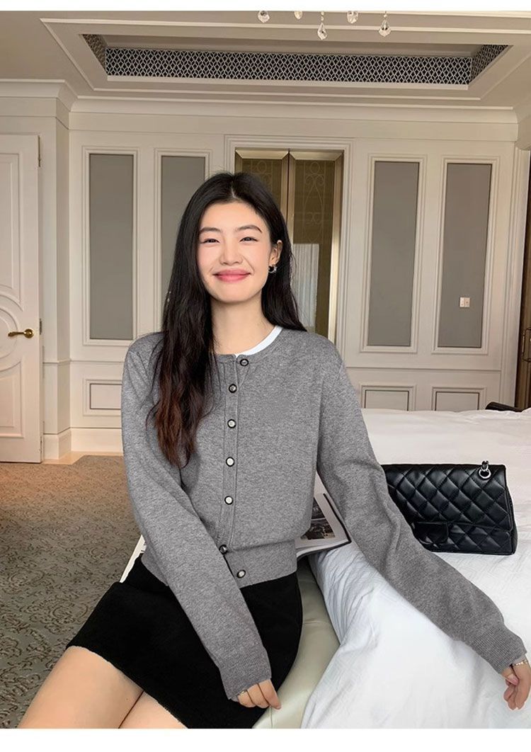 서양식 레트로 심플 올 매치 라운드 넥 니트 카디건 여자 봄 한국식 캐주얼 루즈 아우터 쇼트 탑 트렌디