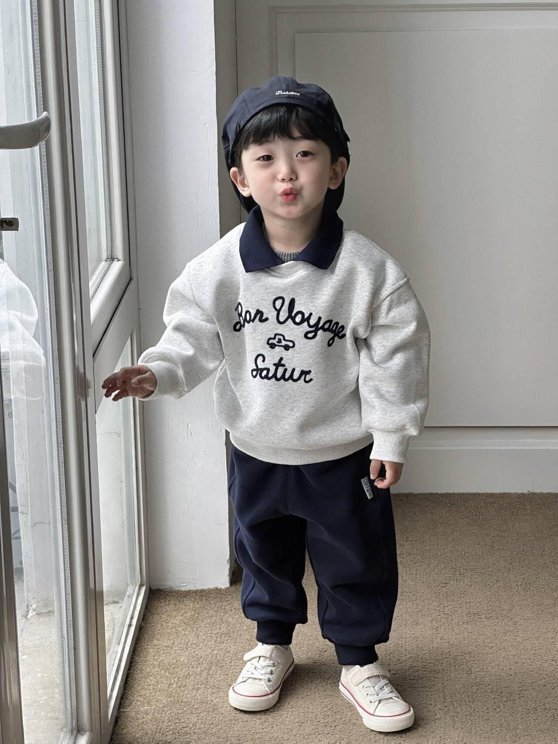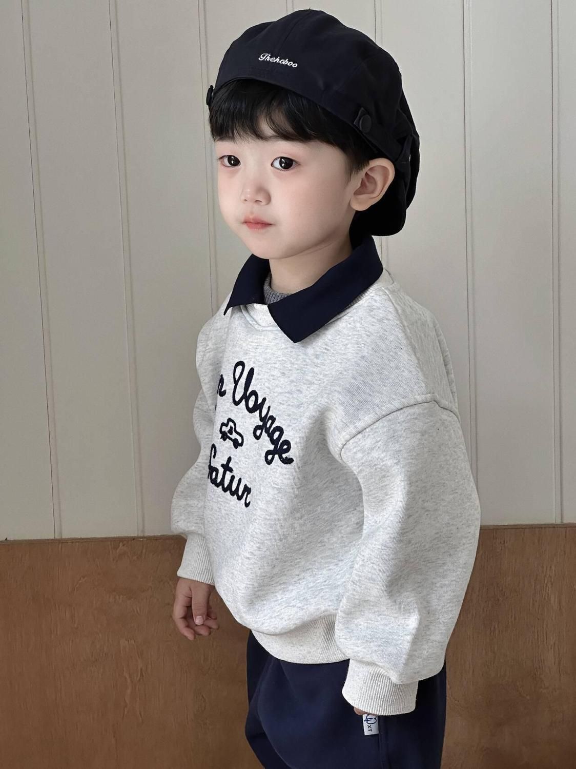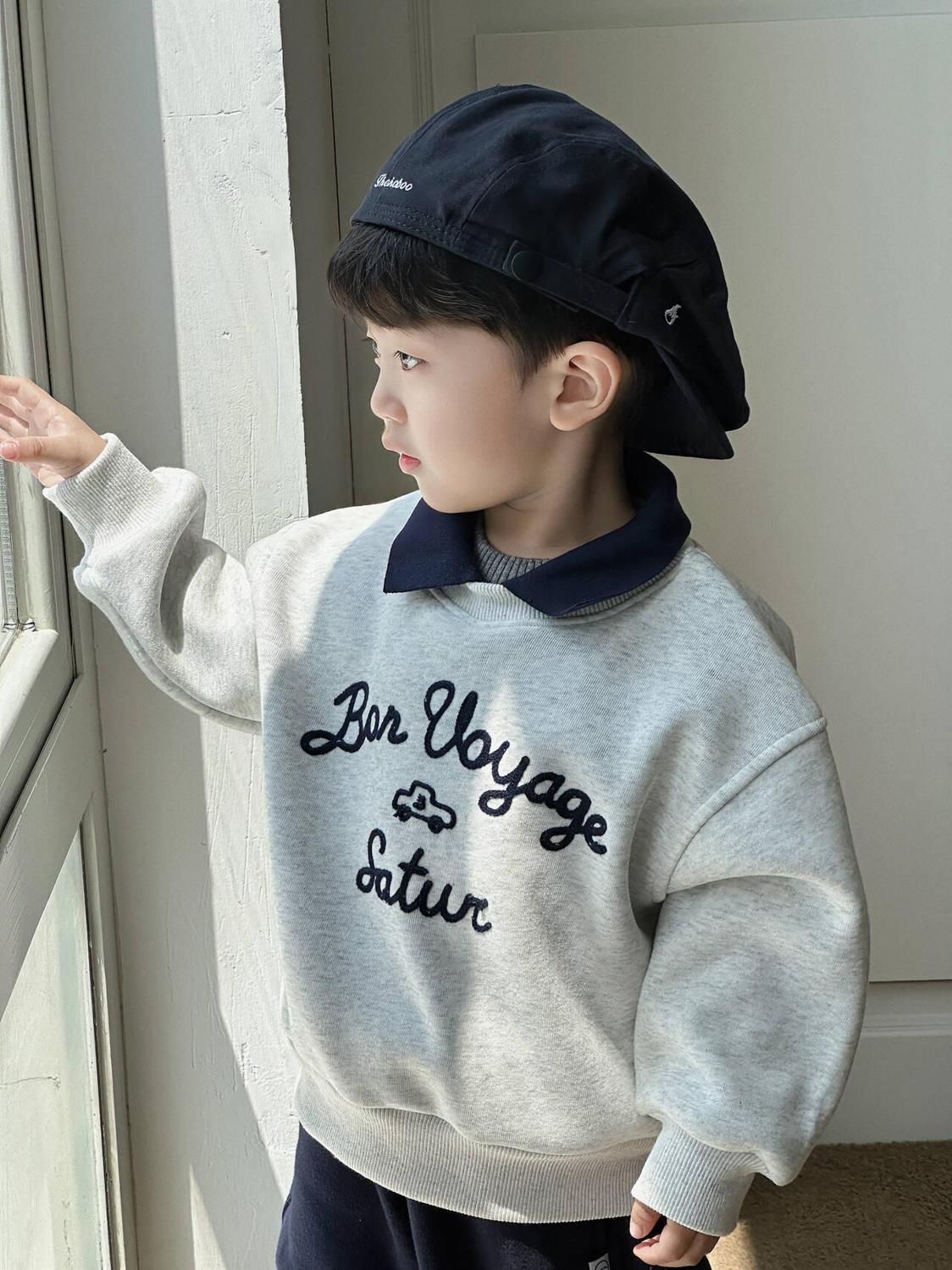 소년 기모 옷깃 스웨터 2024 새로운 가을과 겨울 남자 아기 서양식 한국 캐주얼 편지 풀오버 스웨터스토어 가기