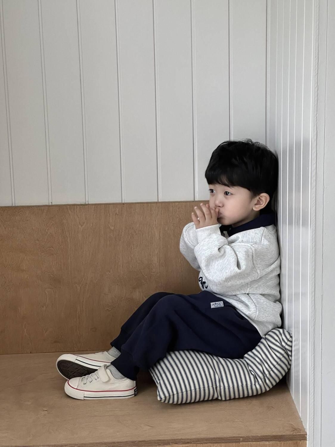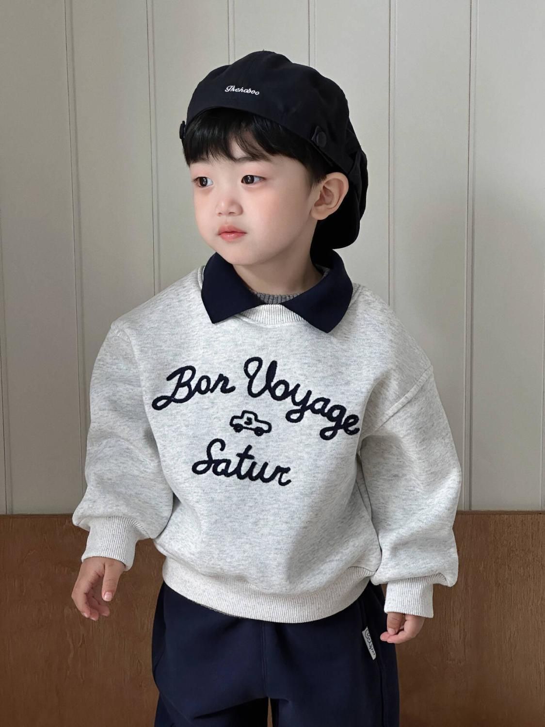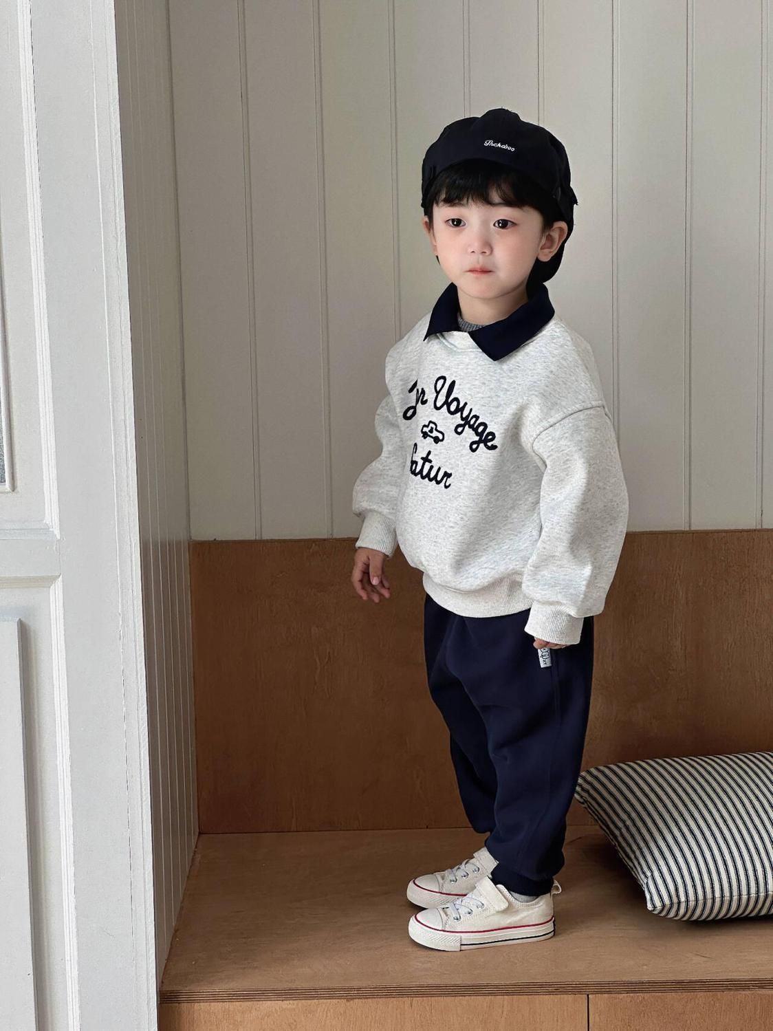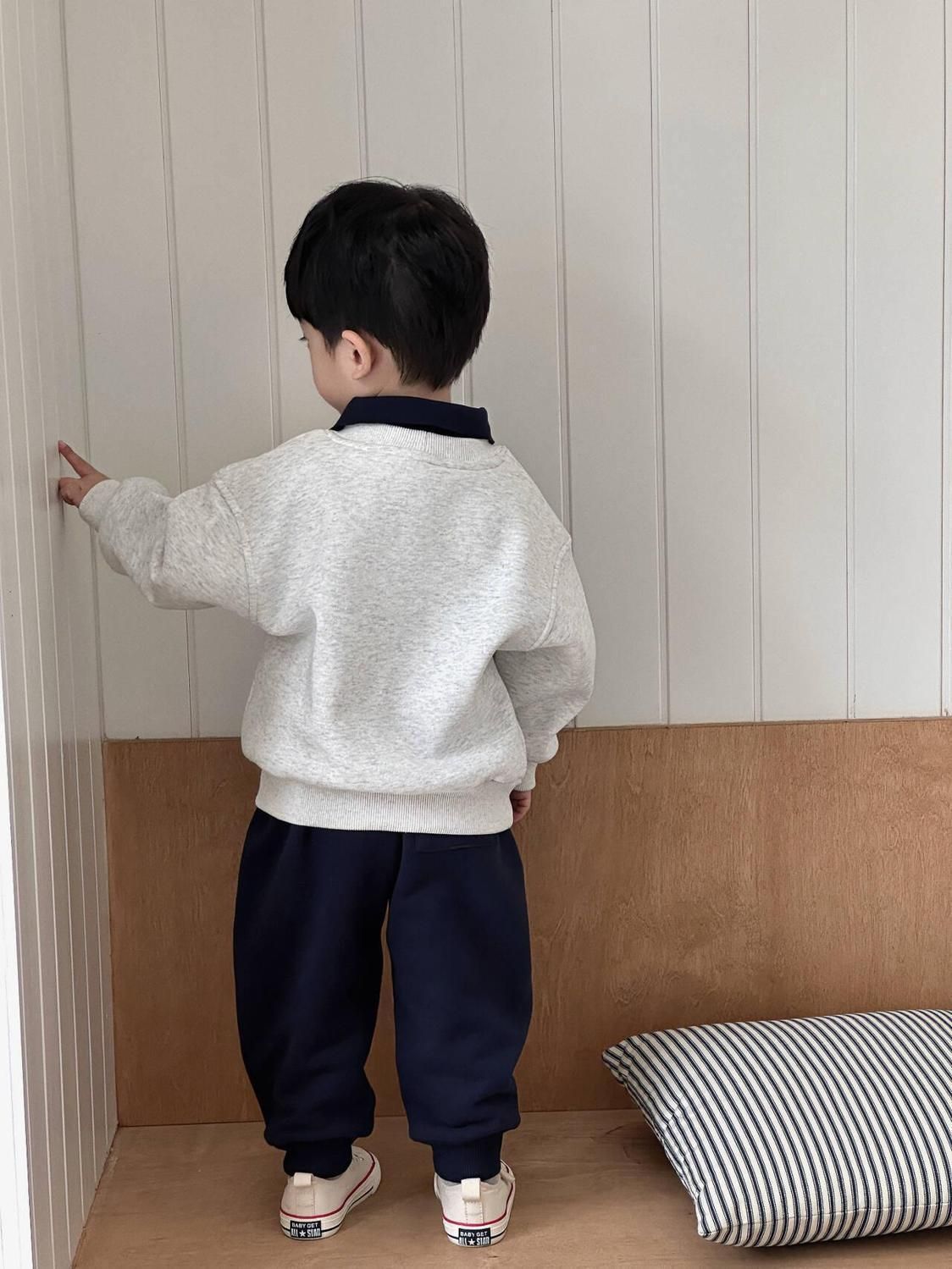 소년 기모 옷깃 스웨터 2024 새로운 가을과 겨울 남자 아기 서양식 한국 캐주얼 편지 풀오버 스웨터스토어 가기