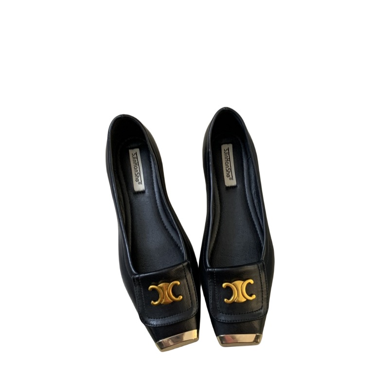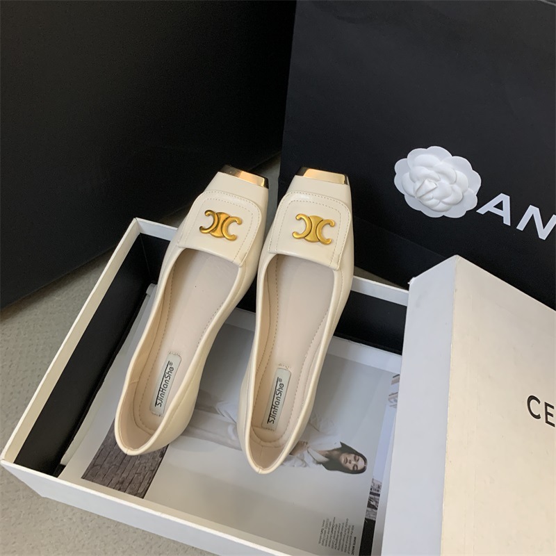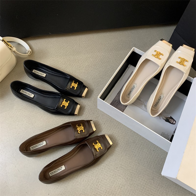 레트로 얕은 입 철발가락 통근 무당 신발 여성의 2024 봄 금속 버클 게으른 내부 높이 증가 단층 신발스토어 가기