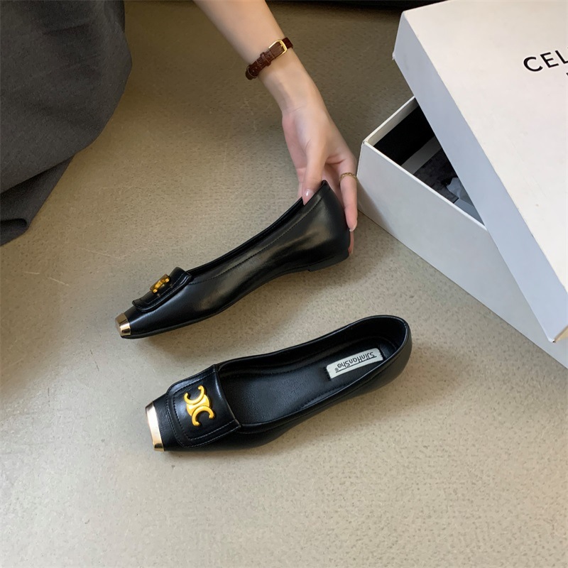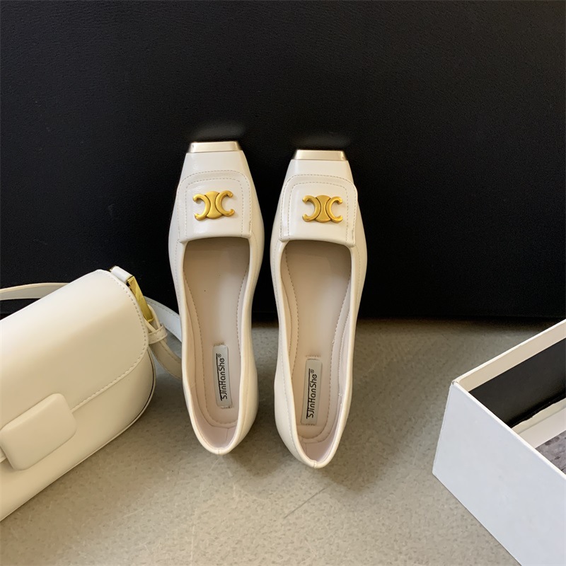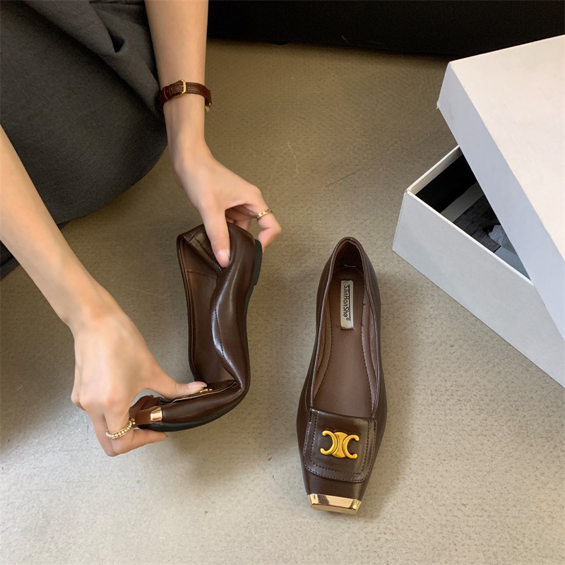 레트로 얕은 입 철발가락 통근 무당 신발 여성의 2024 봄 금속 버클 게으른 내부 높이 증가 단층 신발