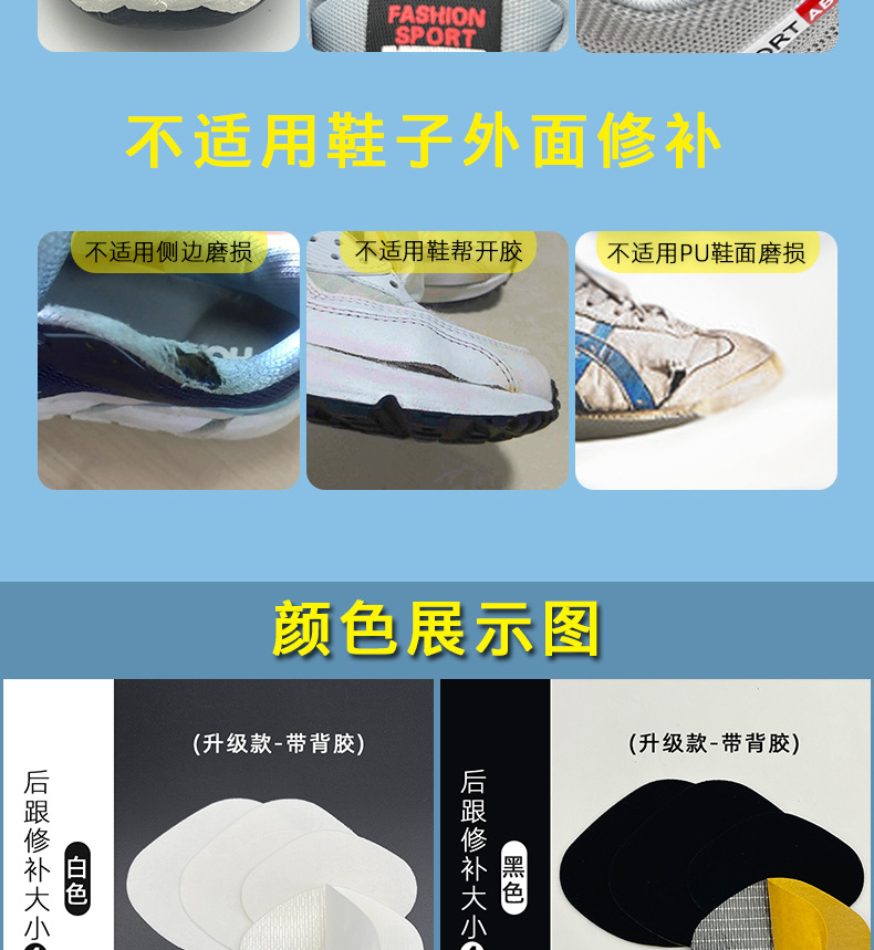 운동화 뒷굽 마모 방지 패치, 구멍 및 마모 방지 뒷굽 스티커, 자가 접착식 신발 수리 도구, 뒷굽 패치 수리
