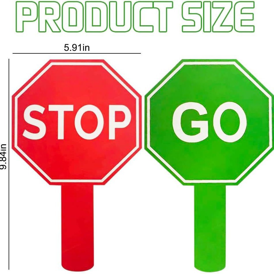 • 【双面设计】:交通标志印有红色和绿色。 一面为绿色 GO,另一面为红色STOP。 这是教孩子识别交通信号并了解交通和安全的理想工具