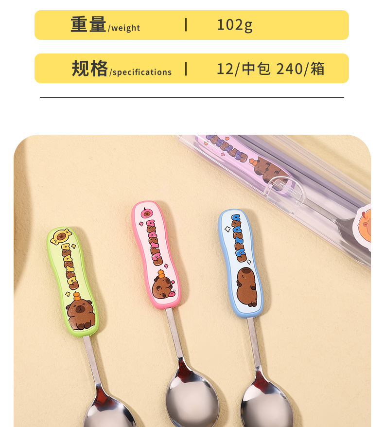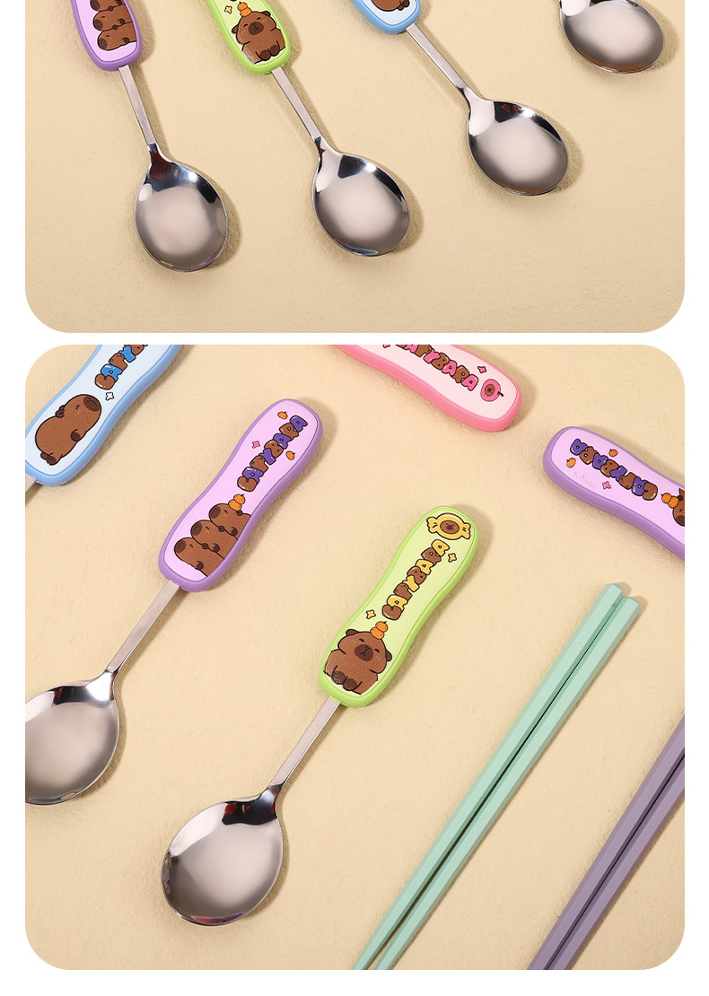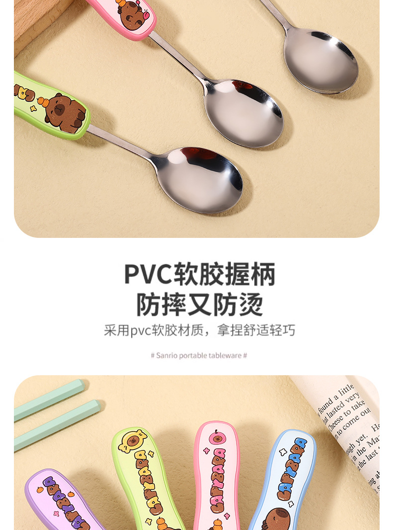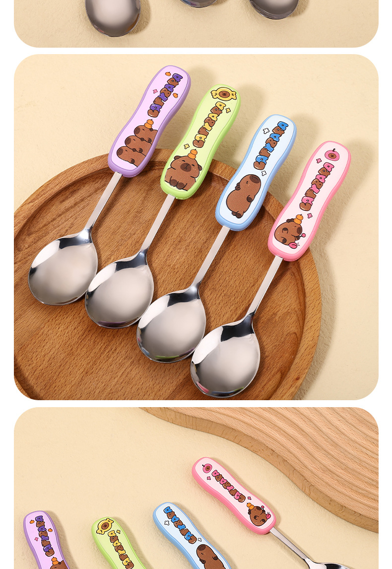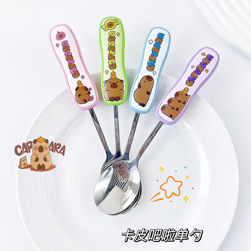 Capi Bala 스테인레스 스틸 스푼 실리콘 핸들 학생 가정용 식사 숟가락 고 가치 소녀의 심장 둥근 숟가락 숟가락 젓가락