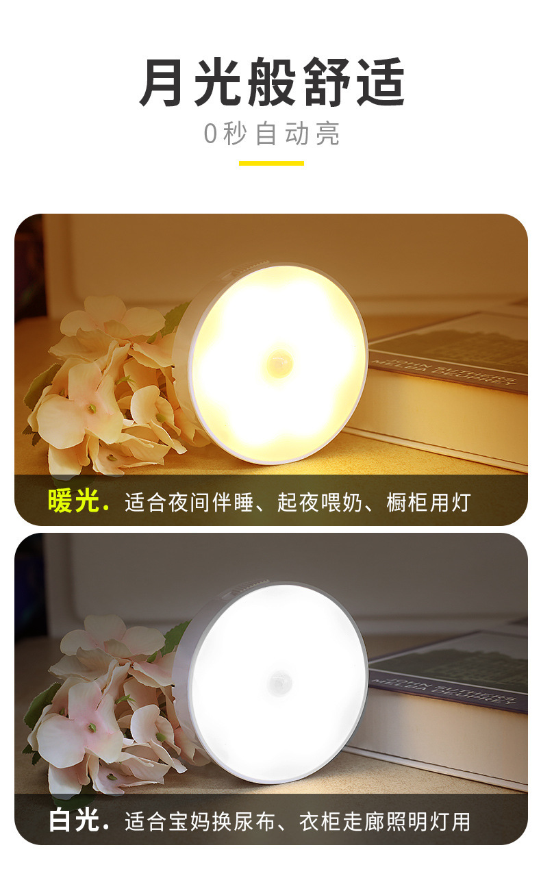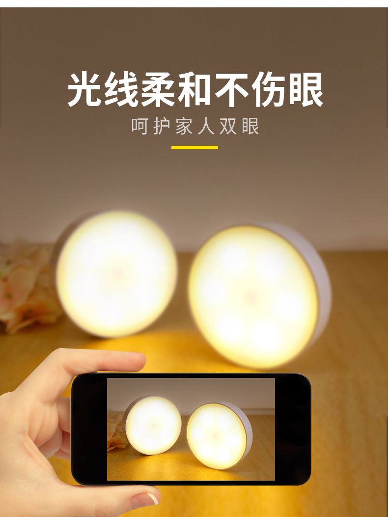 Led 인체 유도 밤 빛 무선 자기 usb 충전 디밍 3 색 옷장 캐비닛 램프 침대 옆 원격 제어 램프스토어 가기