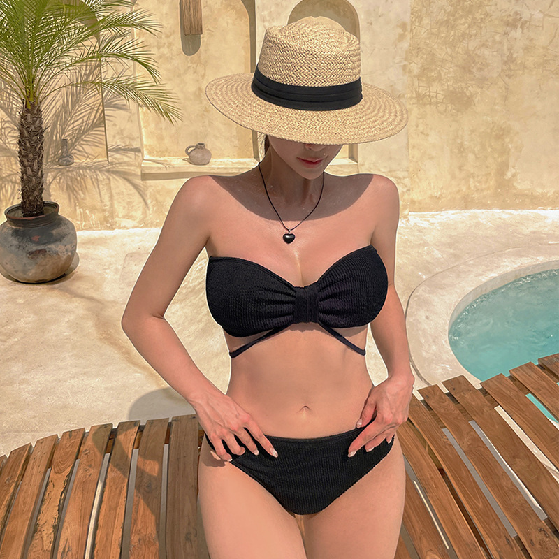 2026년 신상품 여성용 삼각형 분리형 수영복, 배를 가려주고 날씬해 보이는 탑리스 스트랩 비치 리조트 온천 수영복스토어 가기