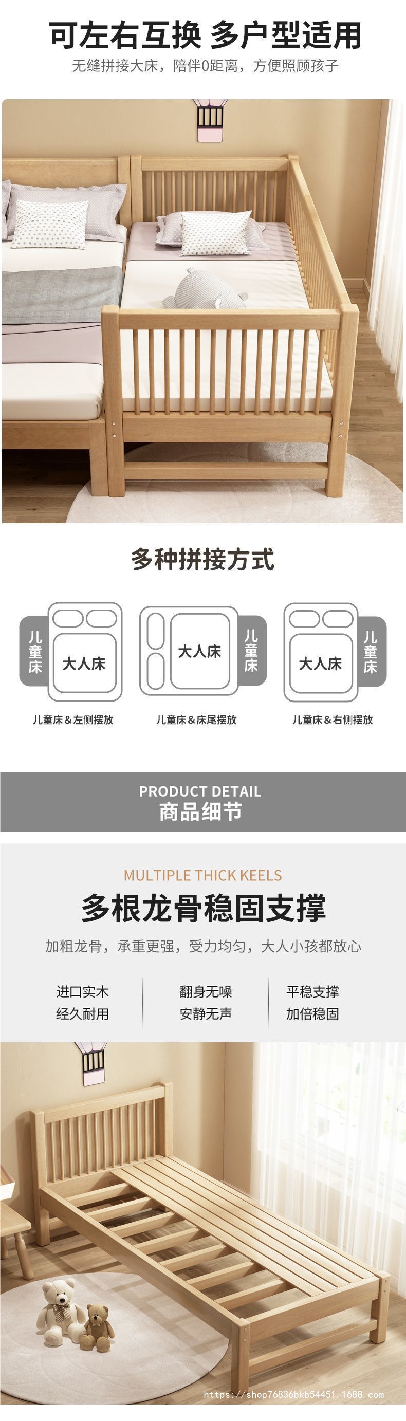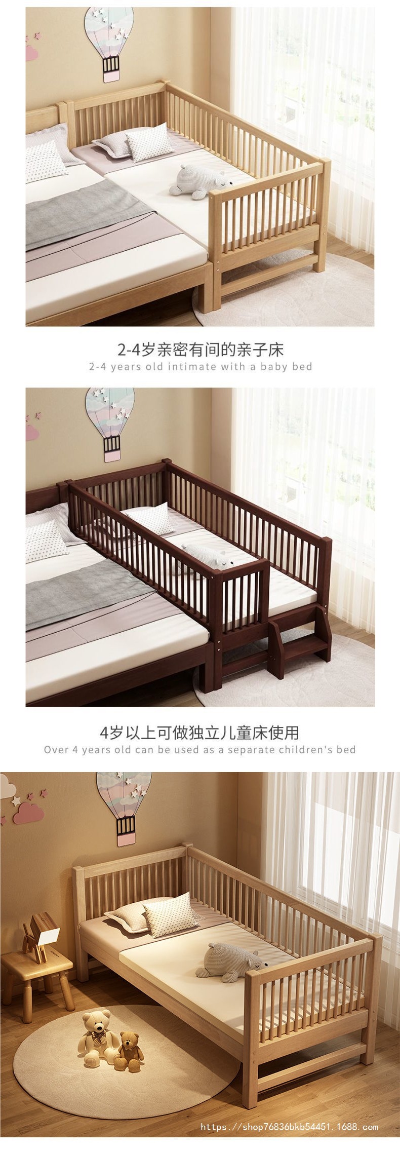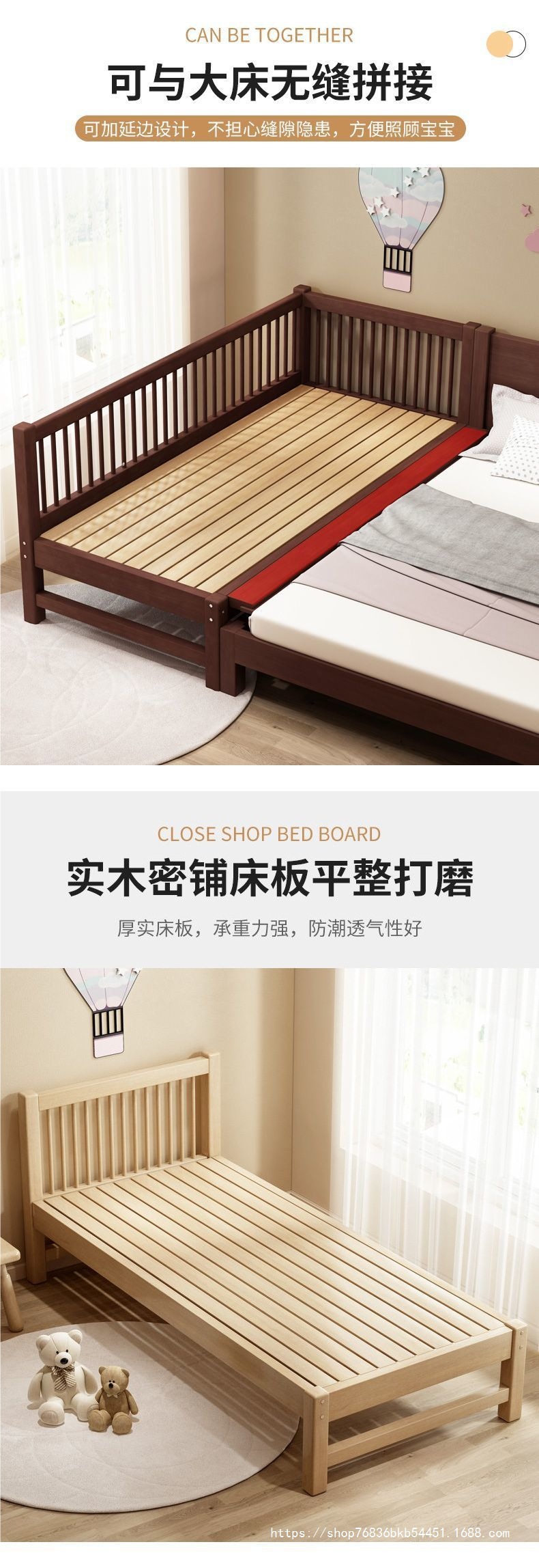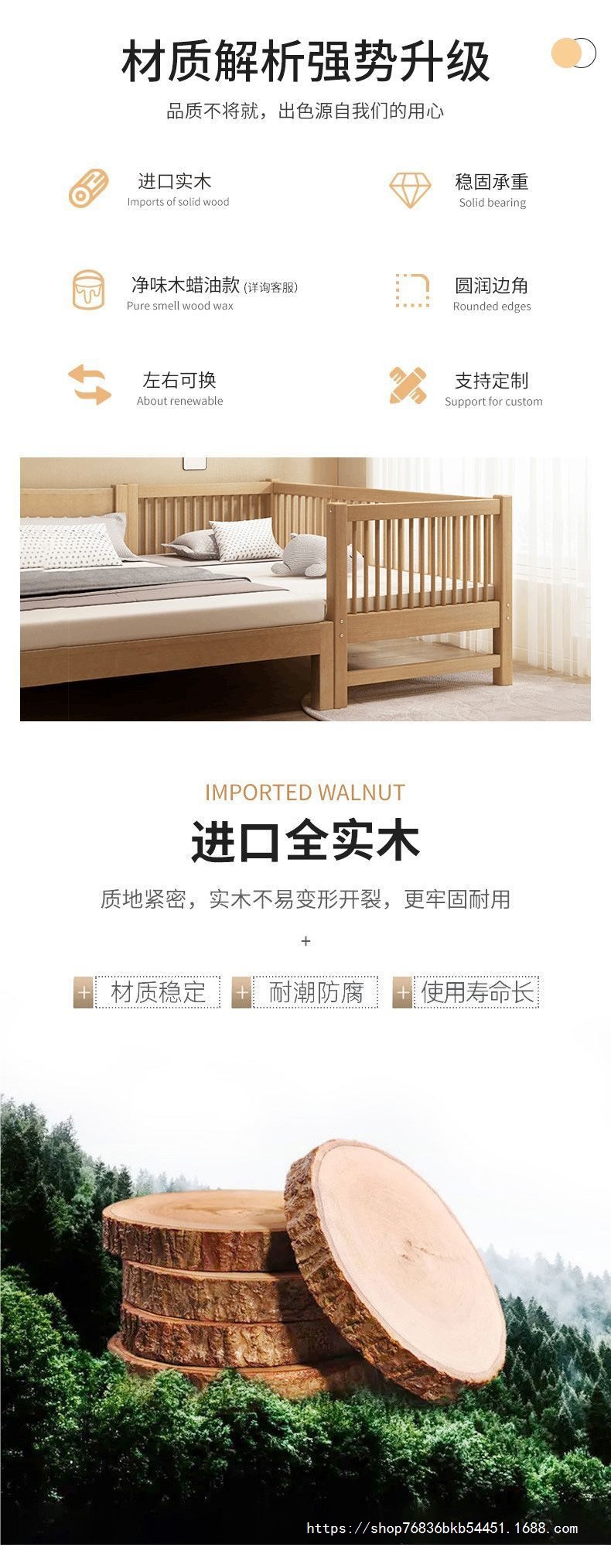 Zsr Walnut 어린이 접합 침대 Yanbian Plus 광대역 보호대 아기 소년과 소녀 침대 접합 빅 사이드 베드 퓨어스토어 가기