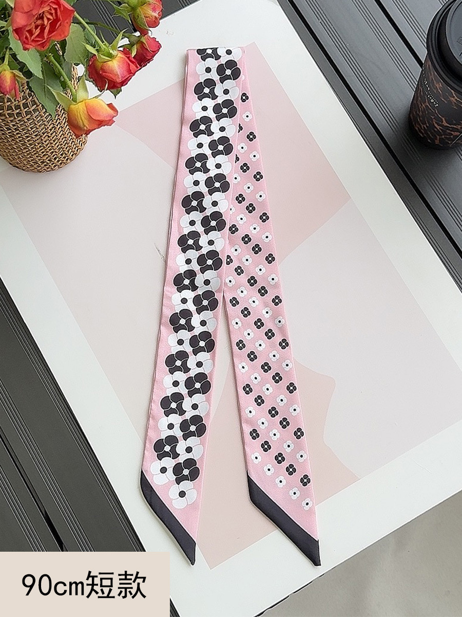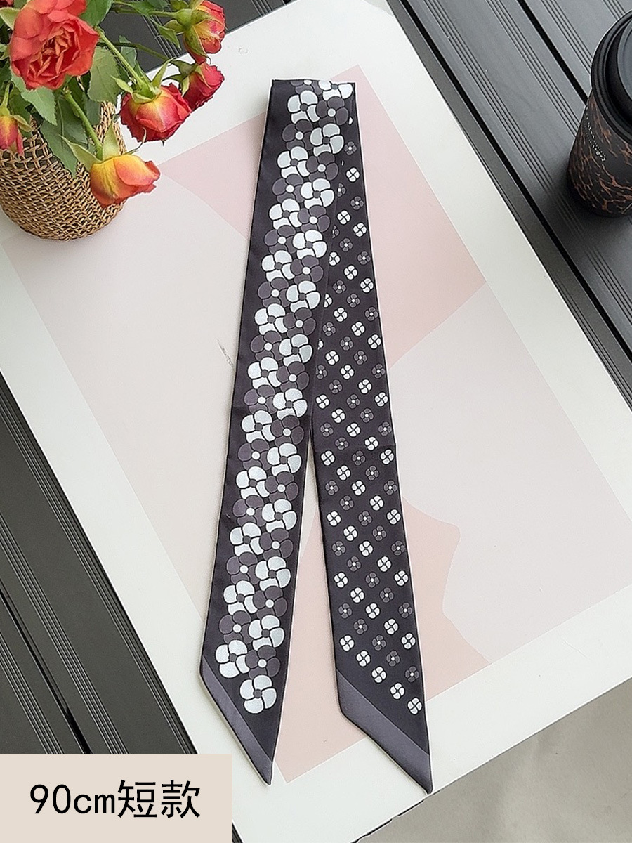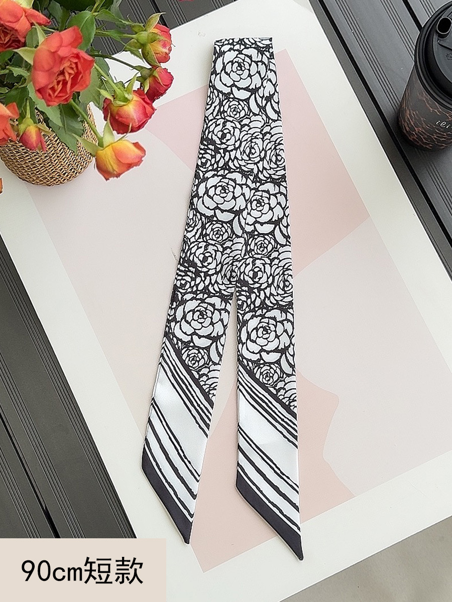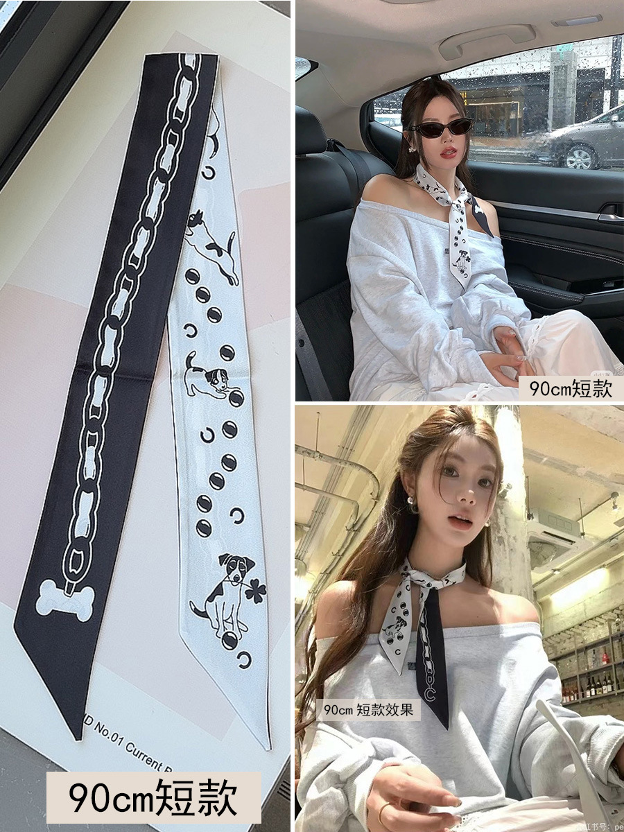 폭발성 흑백 강아지 스카프 작은 향기로운 스타일 스카프 여성용 포장 가방 긴 리본 장식 헤어 리본 떠 다니는 리본