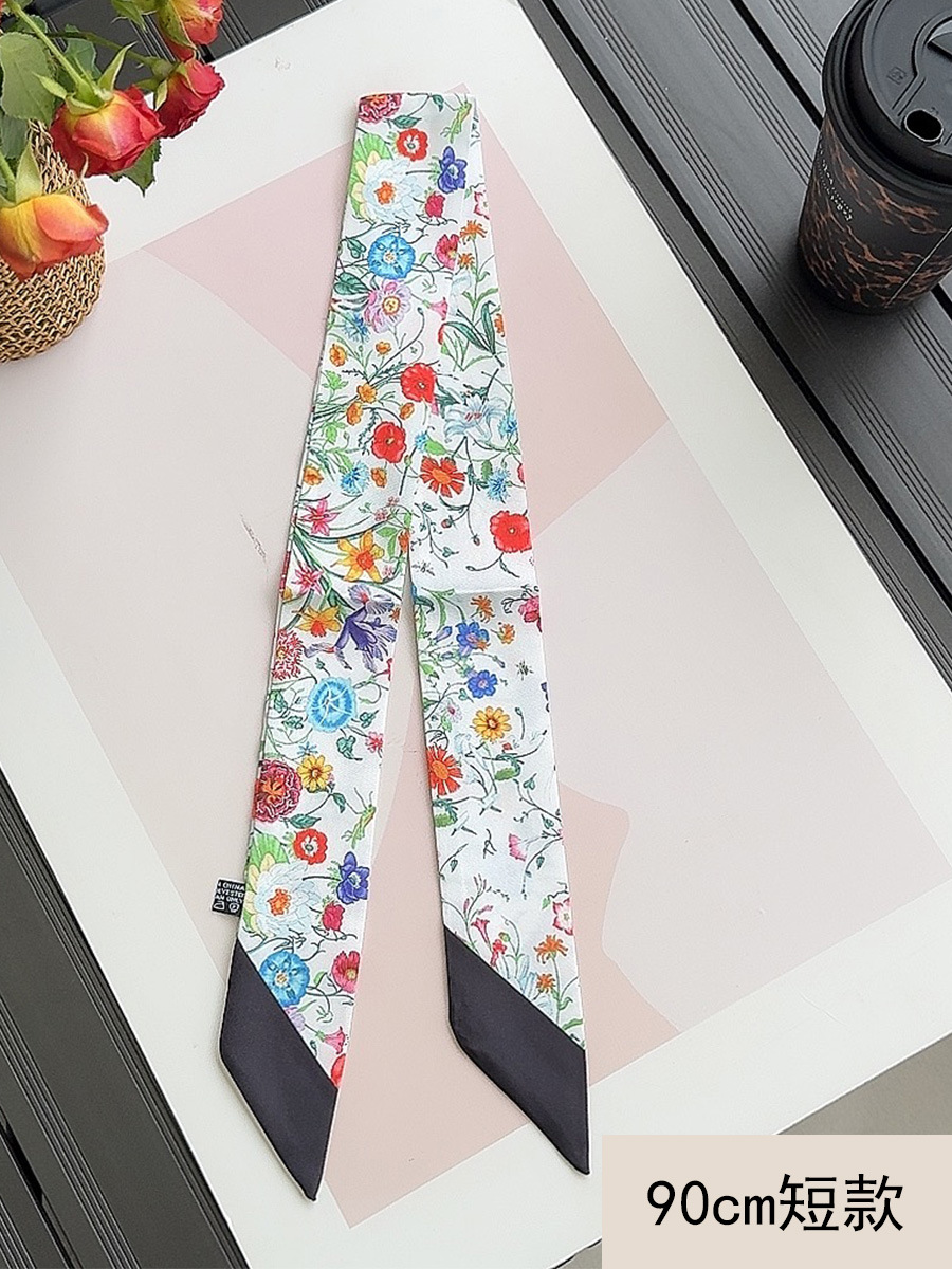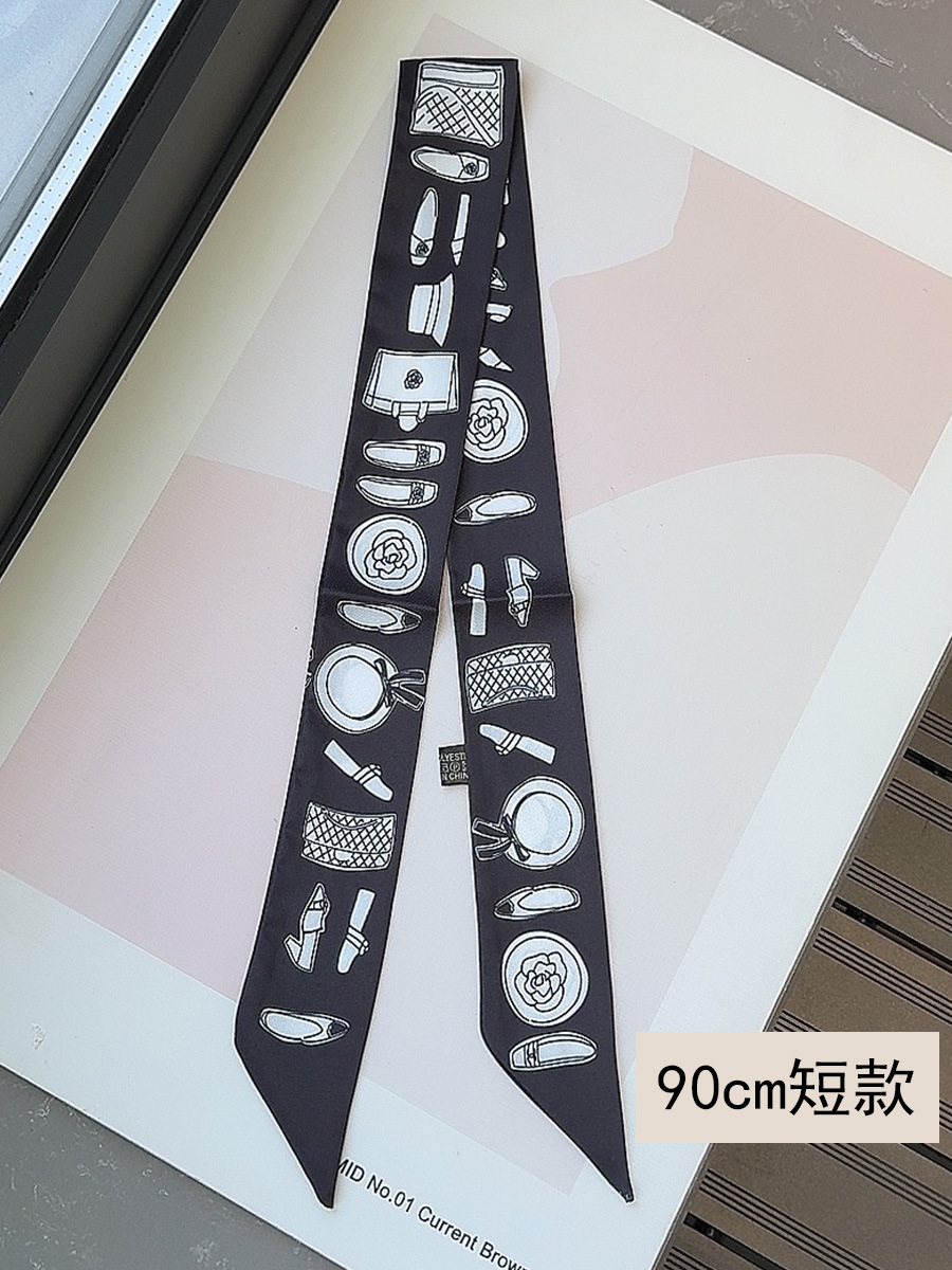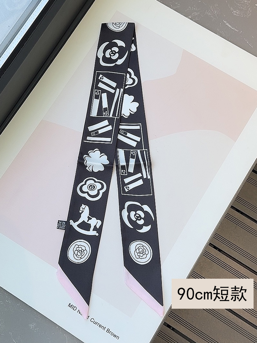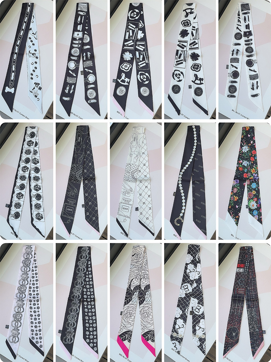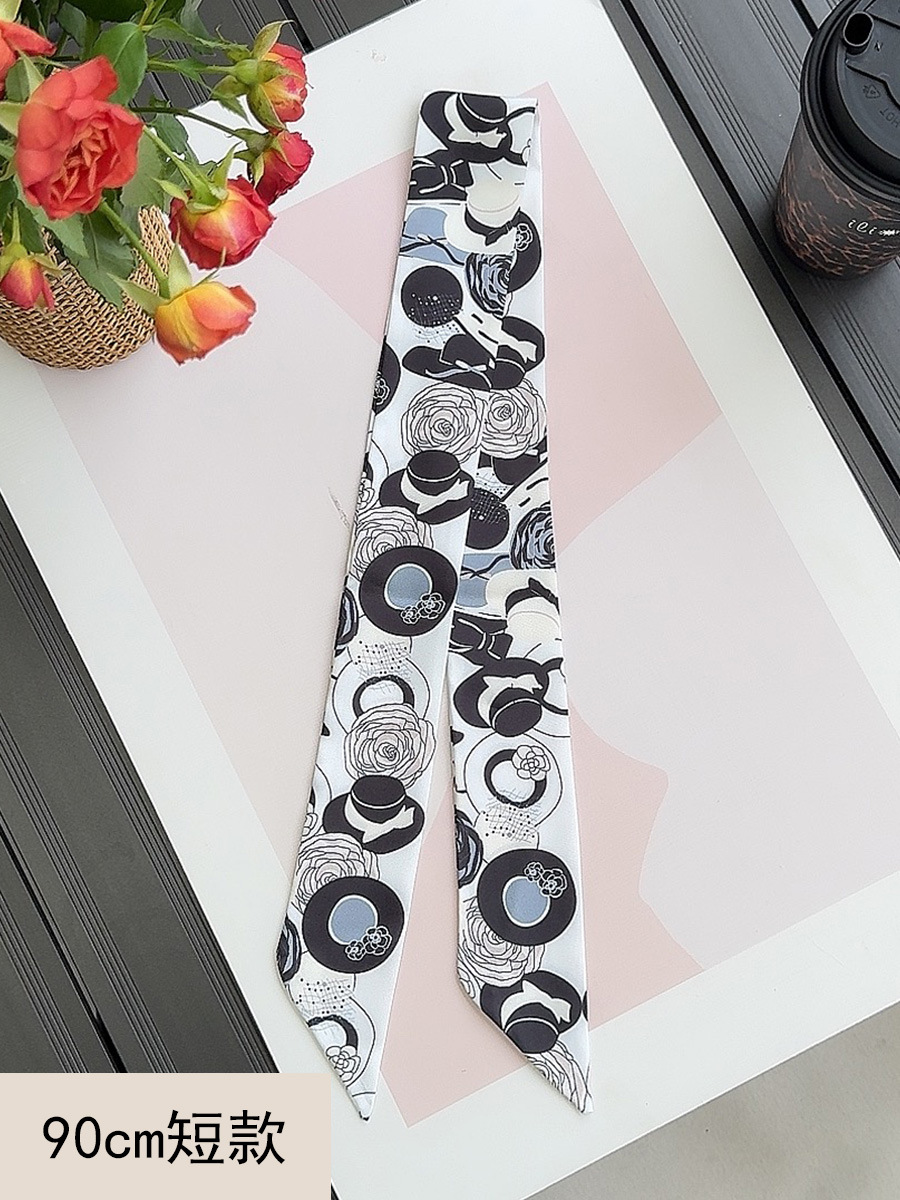 폭발성 흑백 강아지 스카프 작은 향기로운 스타일 스카프 여성용 포장 가방 긴 리본 장식 헤어 리본 떠 다니는 리본스토어 가기