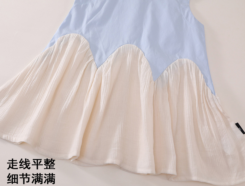 MDD 한국식 소녀 원피스 2025 여름 신식 한국식 서양식 스커트 소녀의 바느질 민소매 원피스스토어 가기