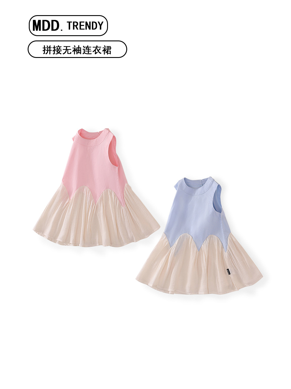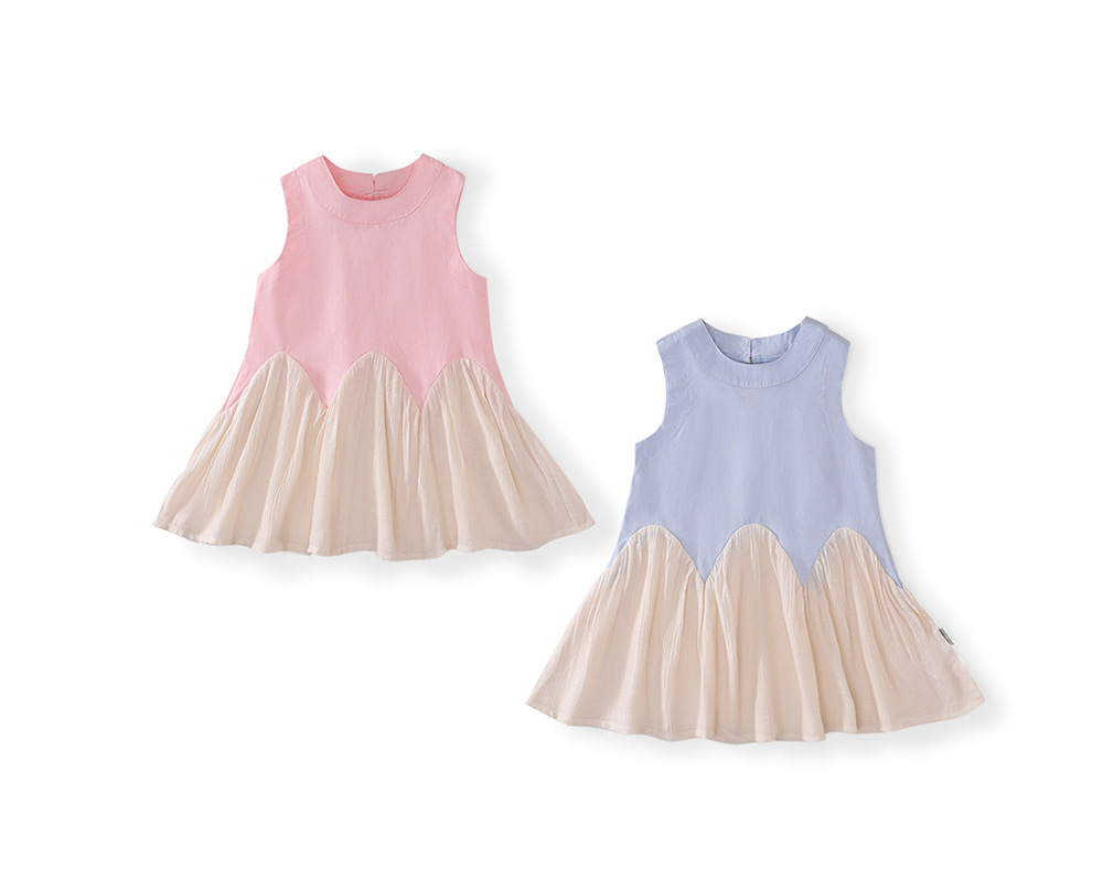 MDD 한국식 소녀 원피스 2025 여름 신식 한국식 서양식 스커트 소녀의 바느질 민소매 원피스