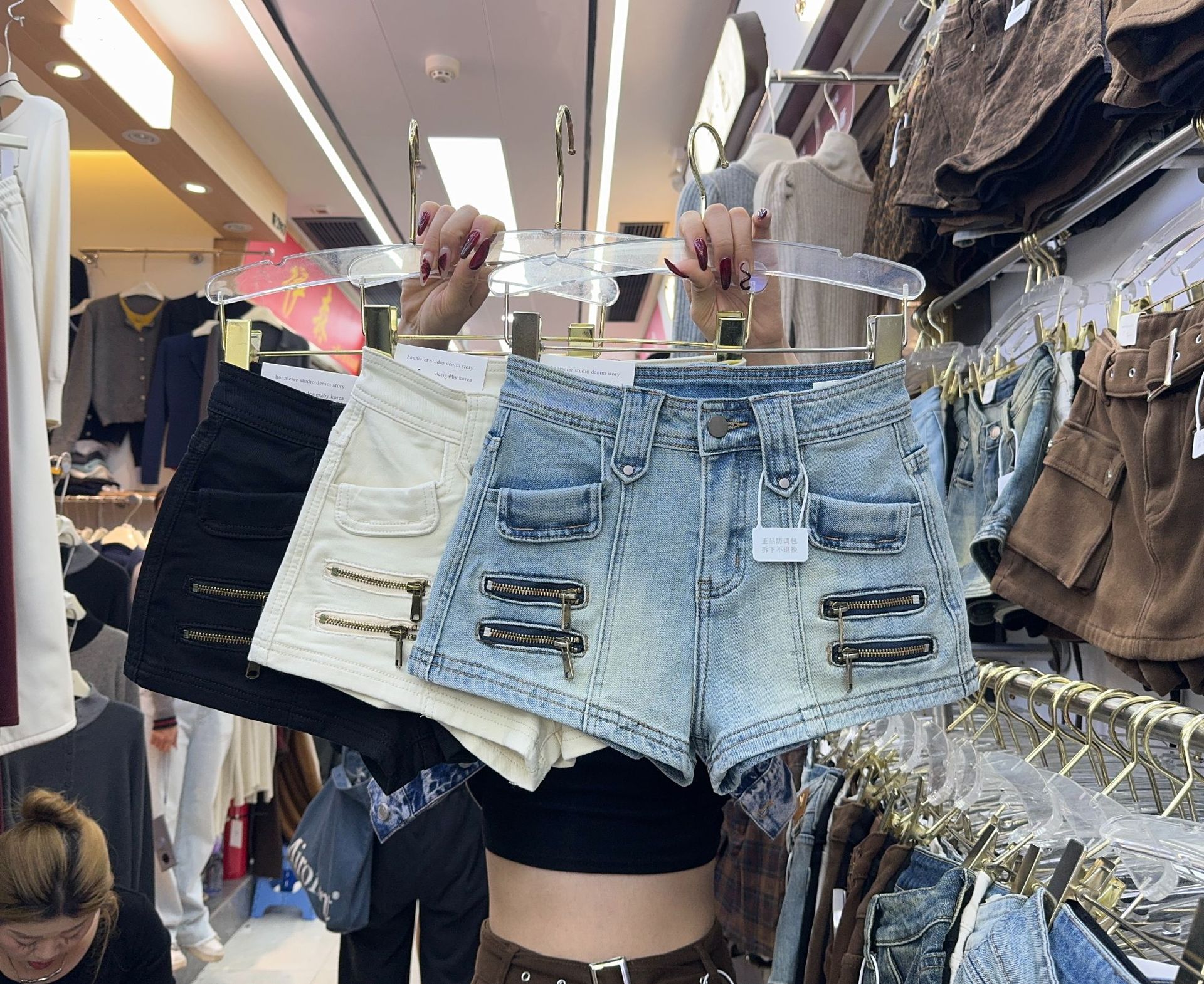 파일 실제 사진 2025 높은 허리 데님 반바지 여성의 뜨거운 소녀 슬림 하이 허리 엉덩이 꽉 핫 팬츠스토어 가기