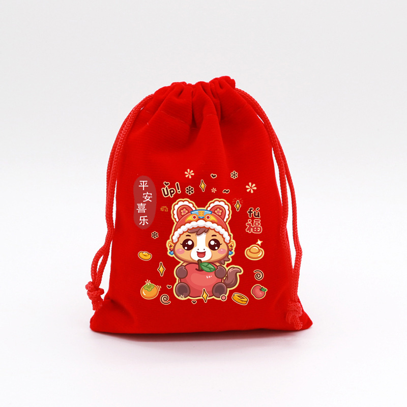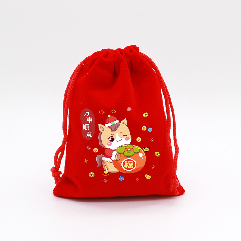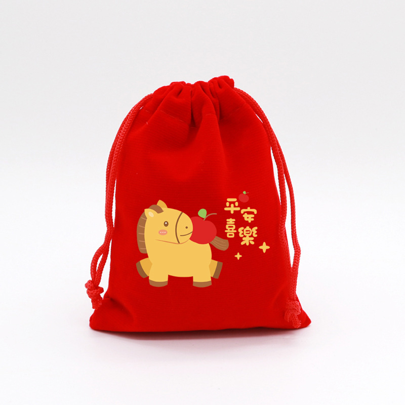 • 말의 해 행운을 빕니다; 큰 빨간 벨벳 가방; 20*30cm [큰 사과 3개를 담을 수 있음]
