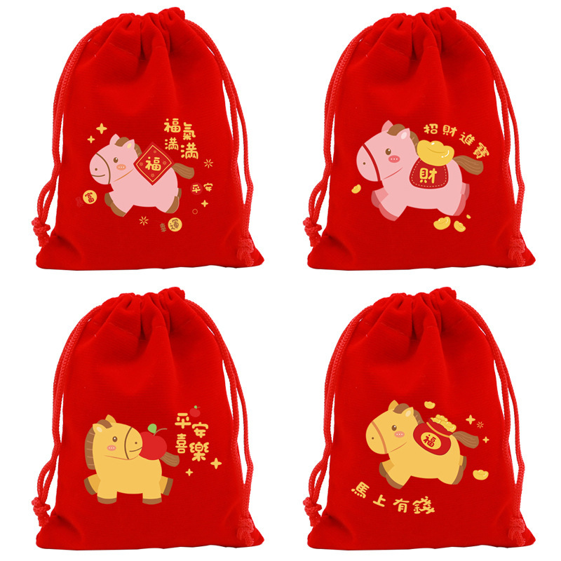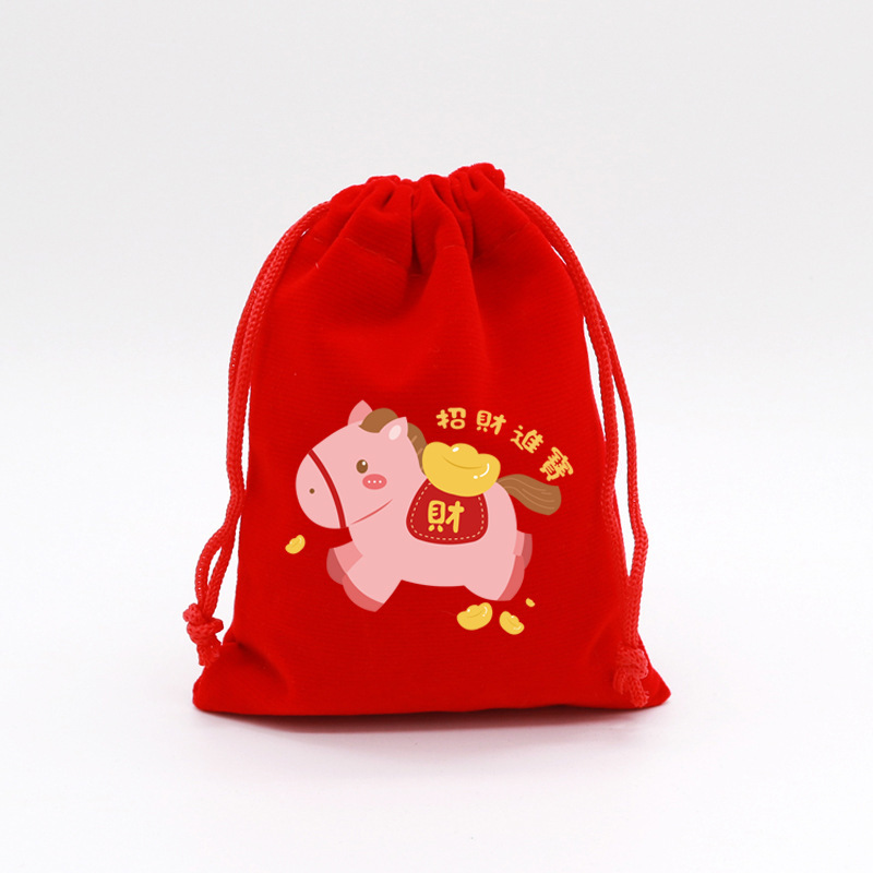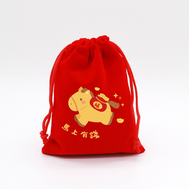 • 말의 해 - 부의 원천, 큰 빨간 벨벳 가방, 9*12cm [계란 1개 담을 수 있음]