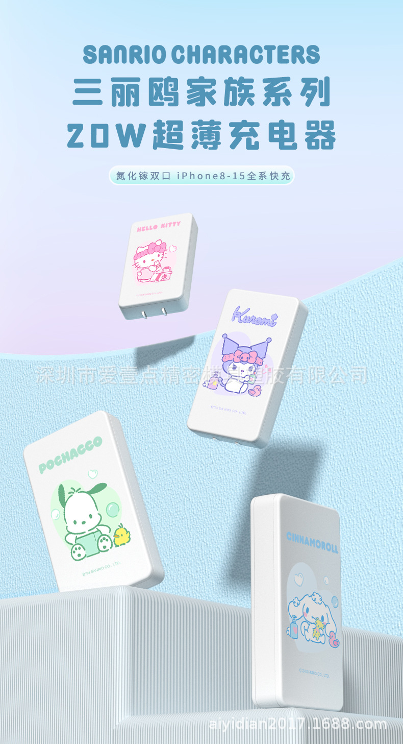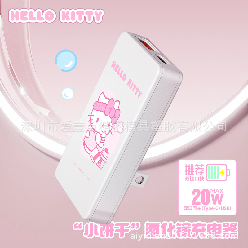 산리오 갈륨 질화물 충전기 만화 초박형 휴대용 PD20W 고속 충전 중간 게이지 3C 듀얼 포트 휴대 전화 충전 헤드