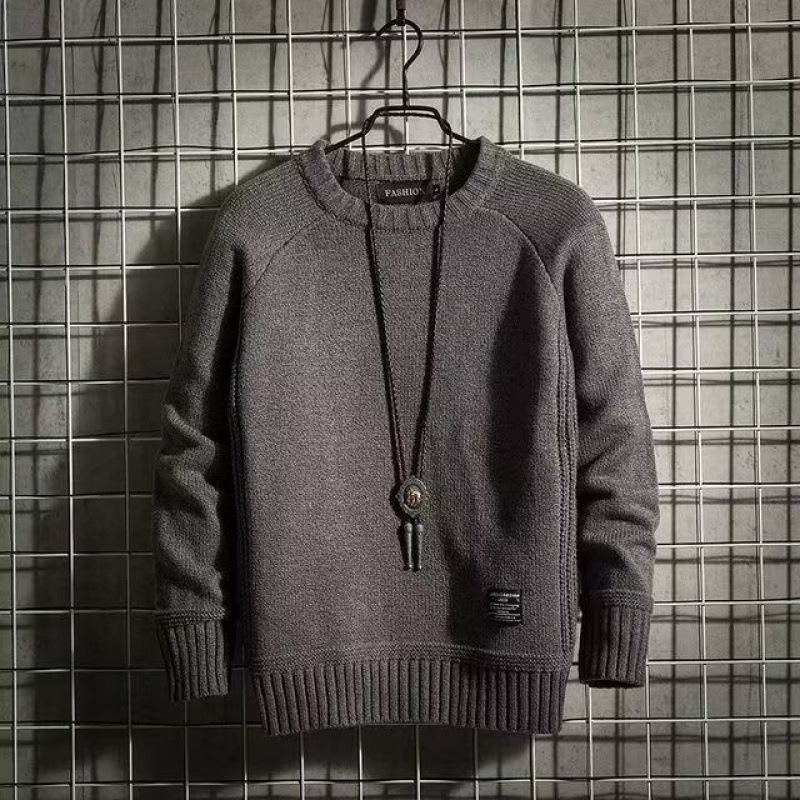 단색 스웨터 남자의 가을과 겨울 니트웨어 크루 넥 풀오버 스웨터 재킷 느슨한 따뜻한 일본 그레이스토어 가기