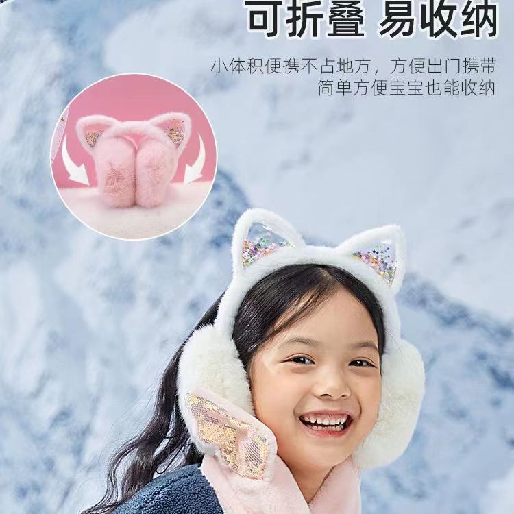 귀여운 새끼 귀마개 어린이 겨울 따뜻한 기모 접이식 모조 토끼 머리카락 두꺼운 소녀의 귀 온난화 귀마개스토어 가기
