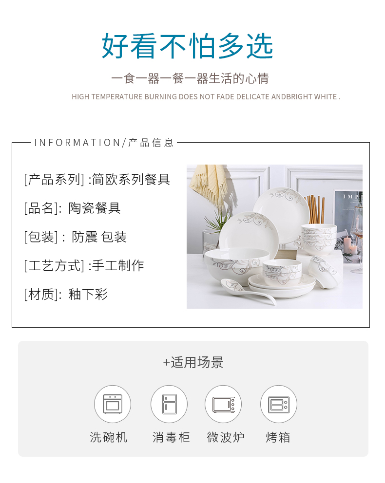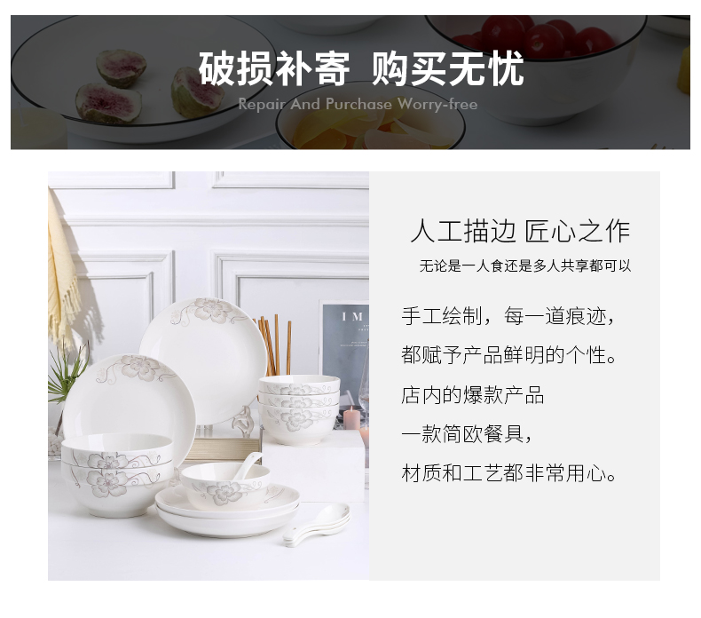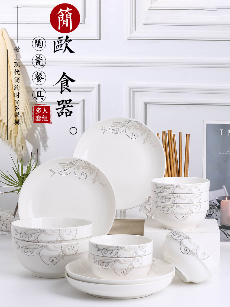 크리 에이 티브 1-6 명 요리 세트 가정용 접시 접시 국수 그릇 큰 수프 그릇 생선 접시 조합 간단한 식사스토어 가기