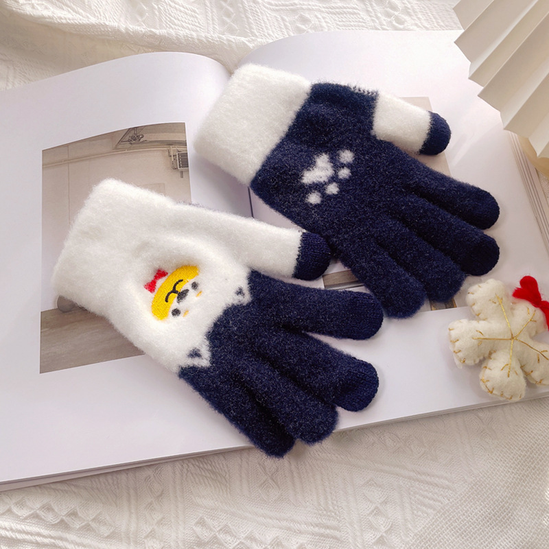 겨울 따뜻한 학생 승마 장갑 니트 양모 기모 두꺼운 만화 장갑 한국 터치 스크린 가구 Zhao Zhiwu