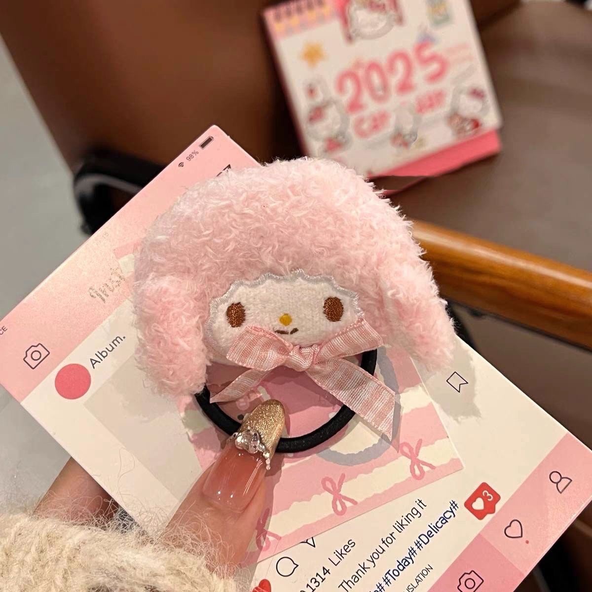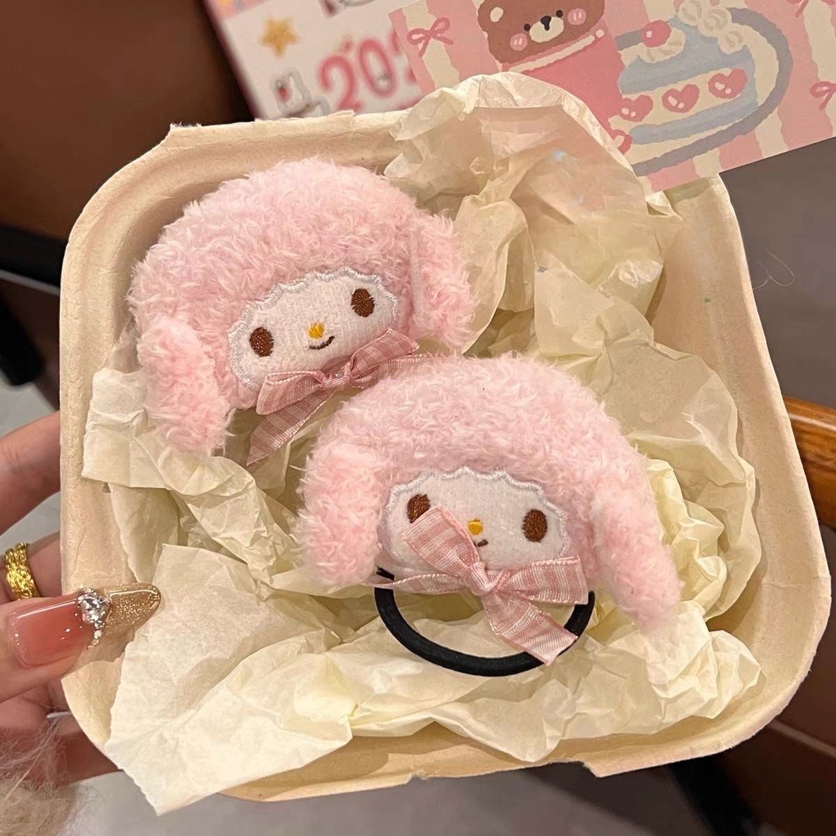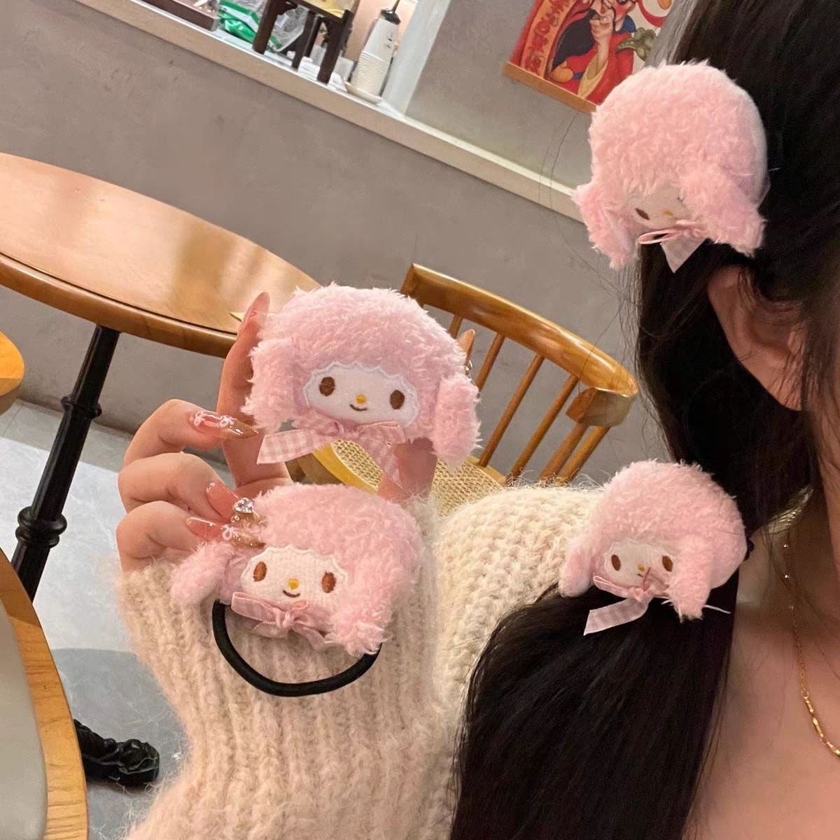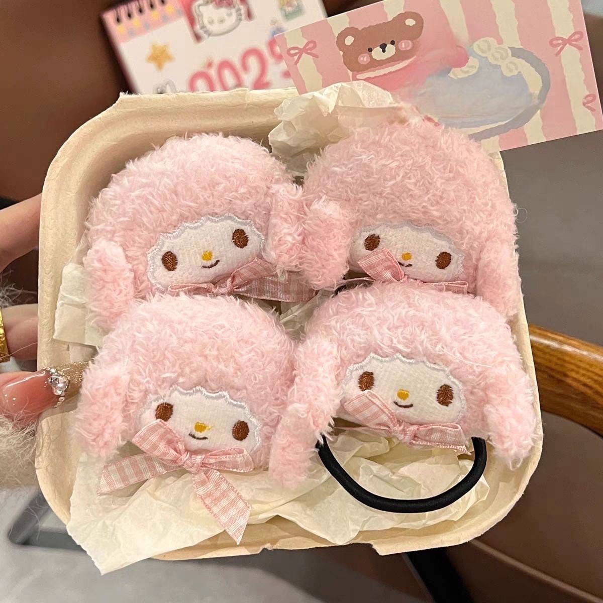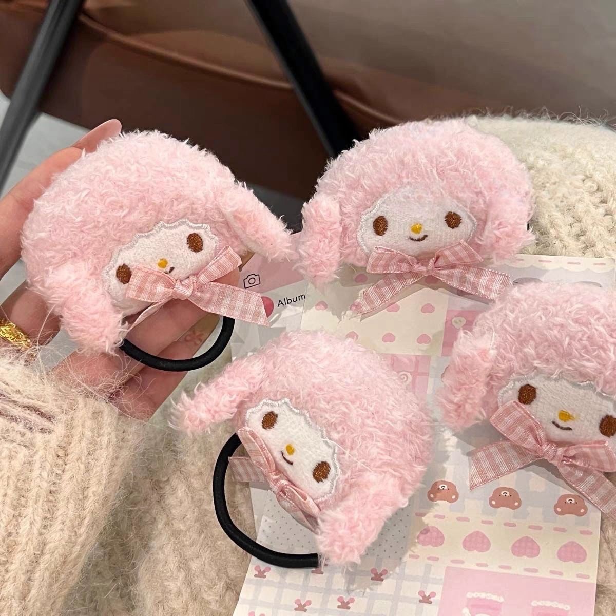 • 핑크 양고기 머리끈