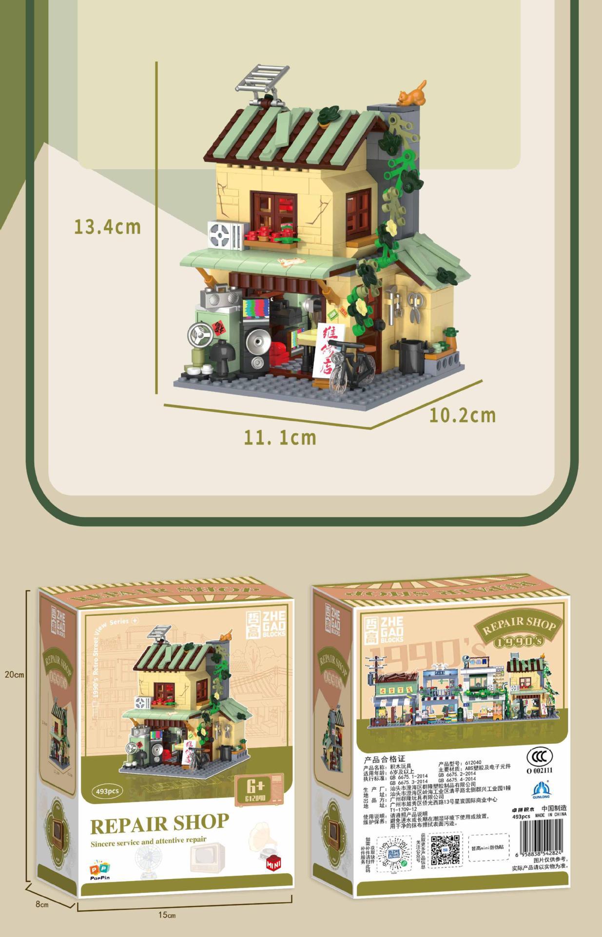 제고 612037-612040 레트로 거리 풍경 추억의 건축물 교육용 블록 어린이 장난감