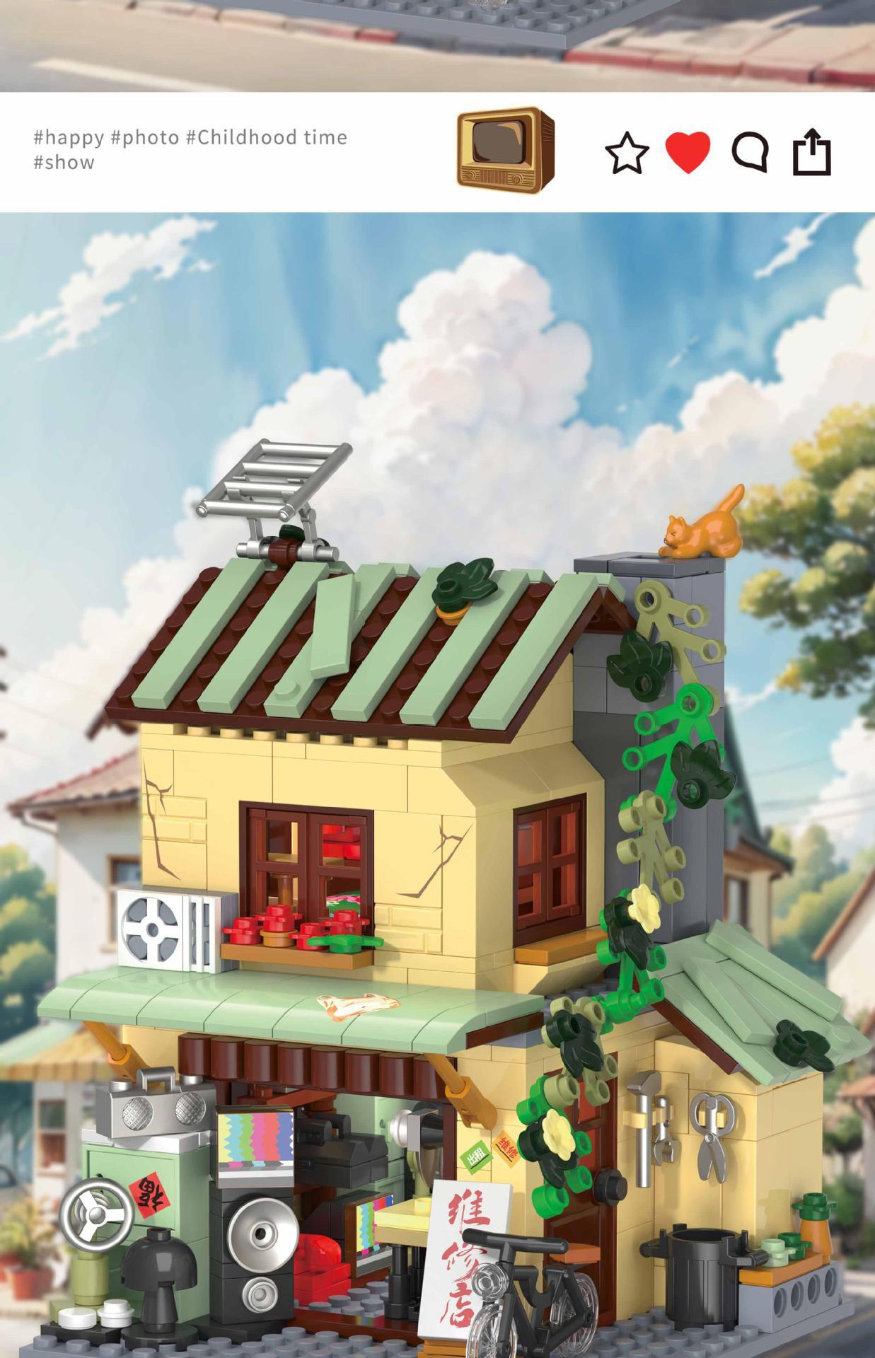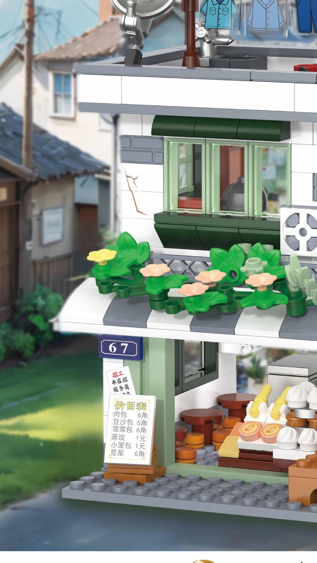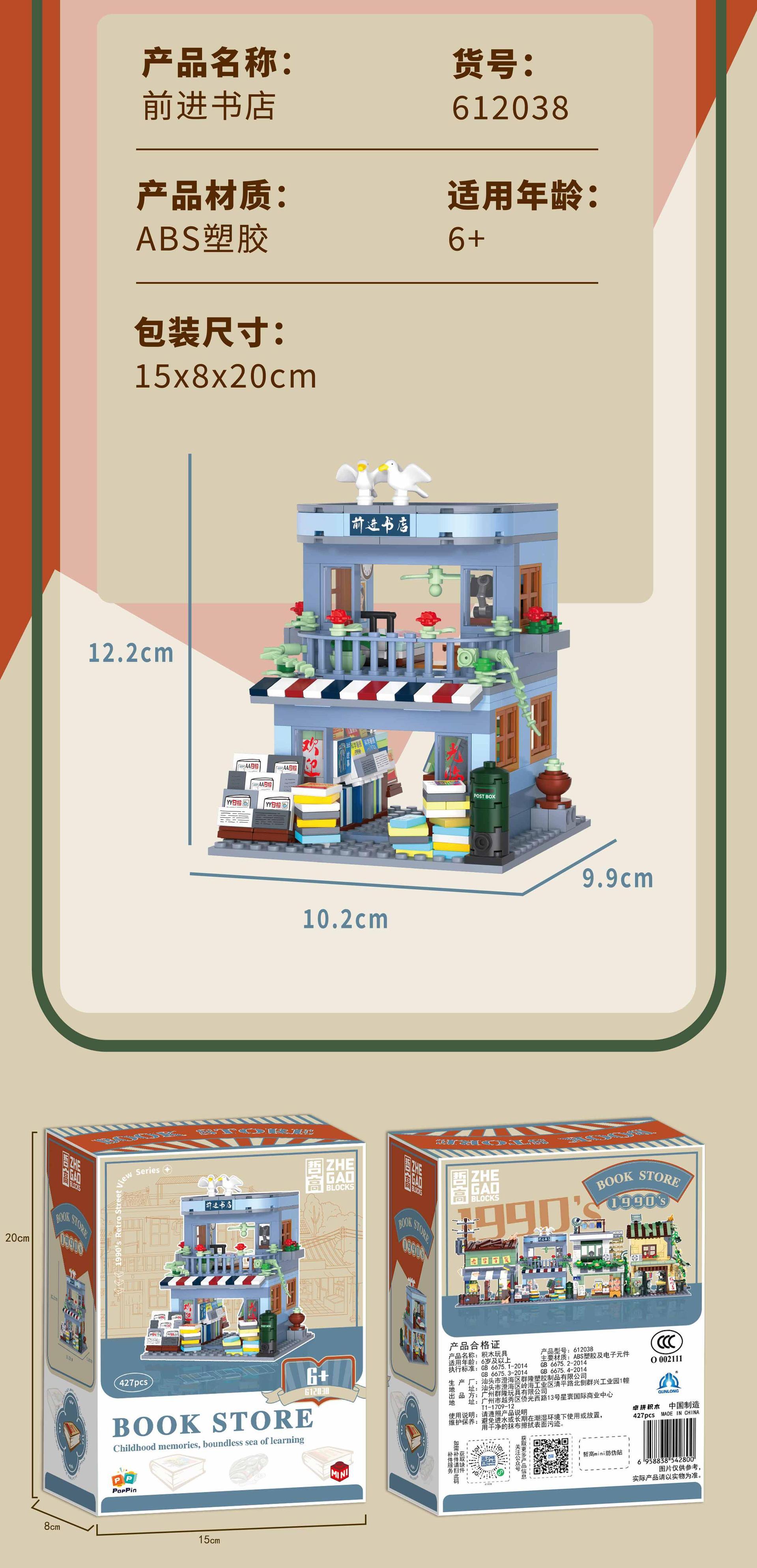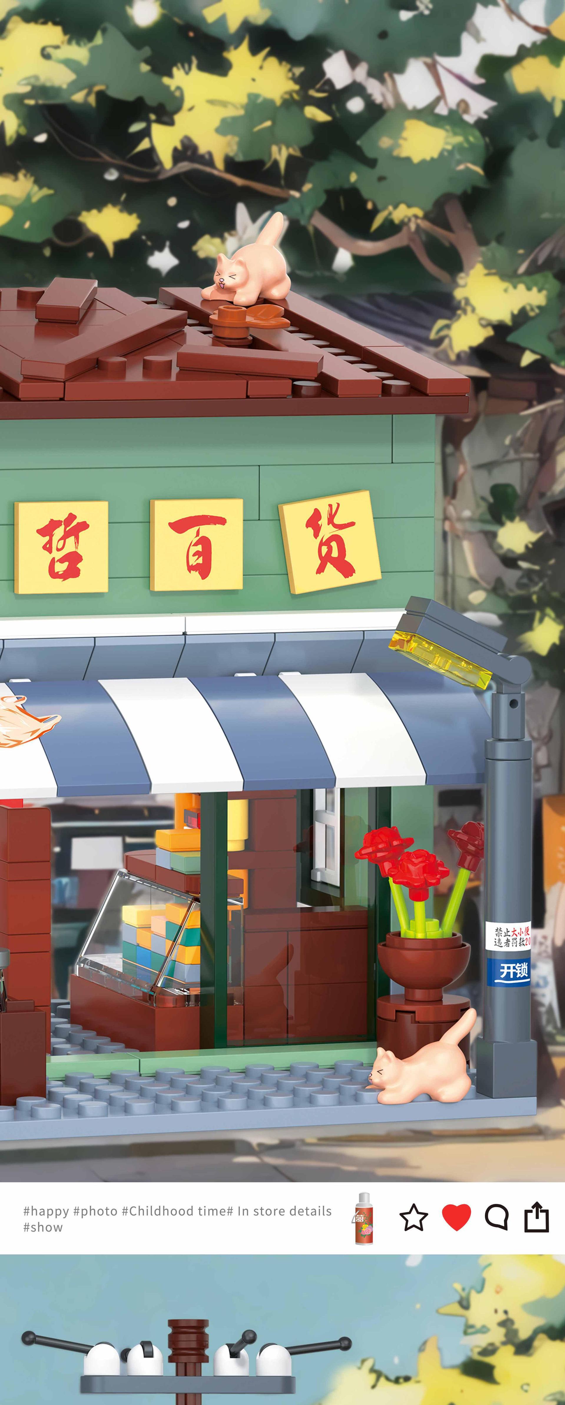 제고 612037-612040 레트로 거리 풍경 추억의 건축물 교육용 블록 어린이 장난감스토어 가기
