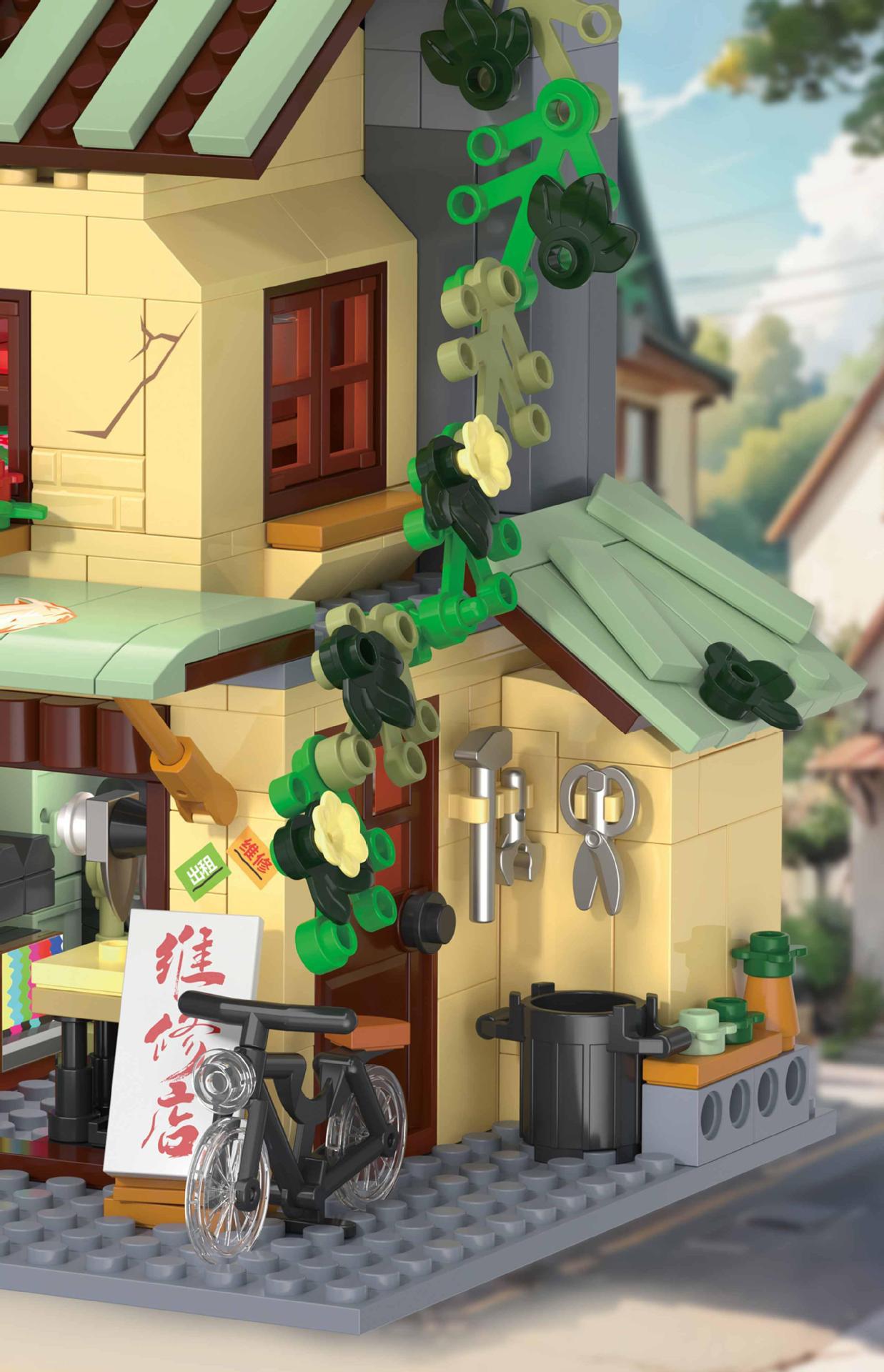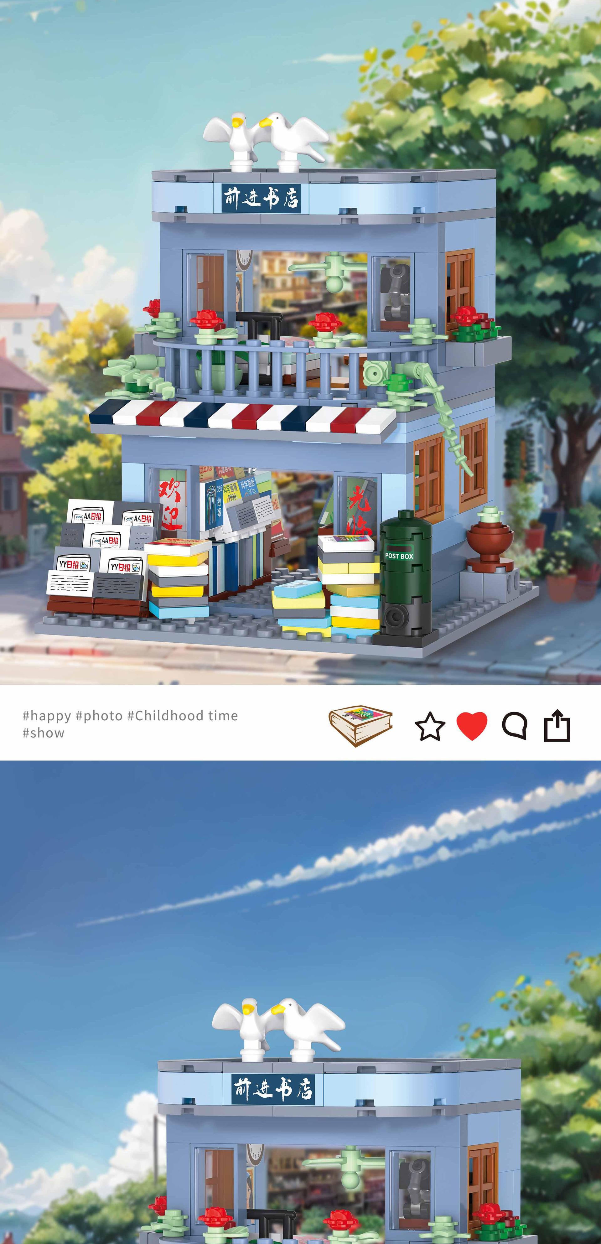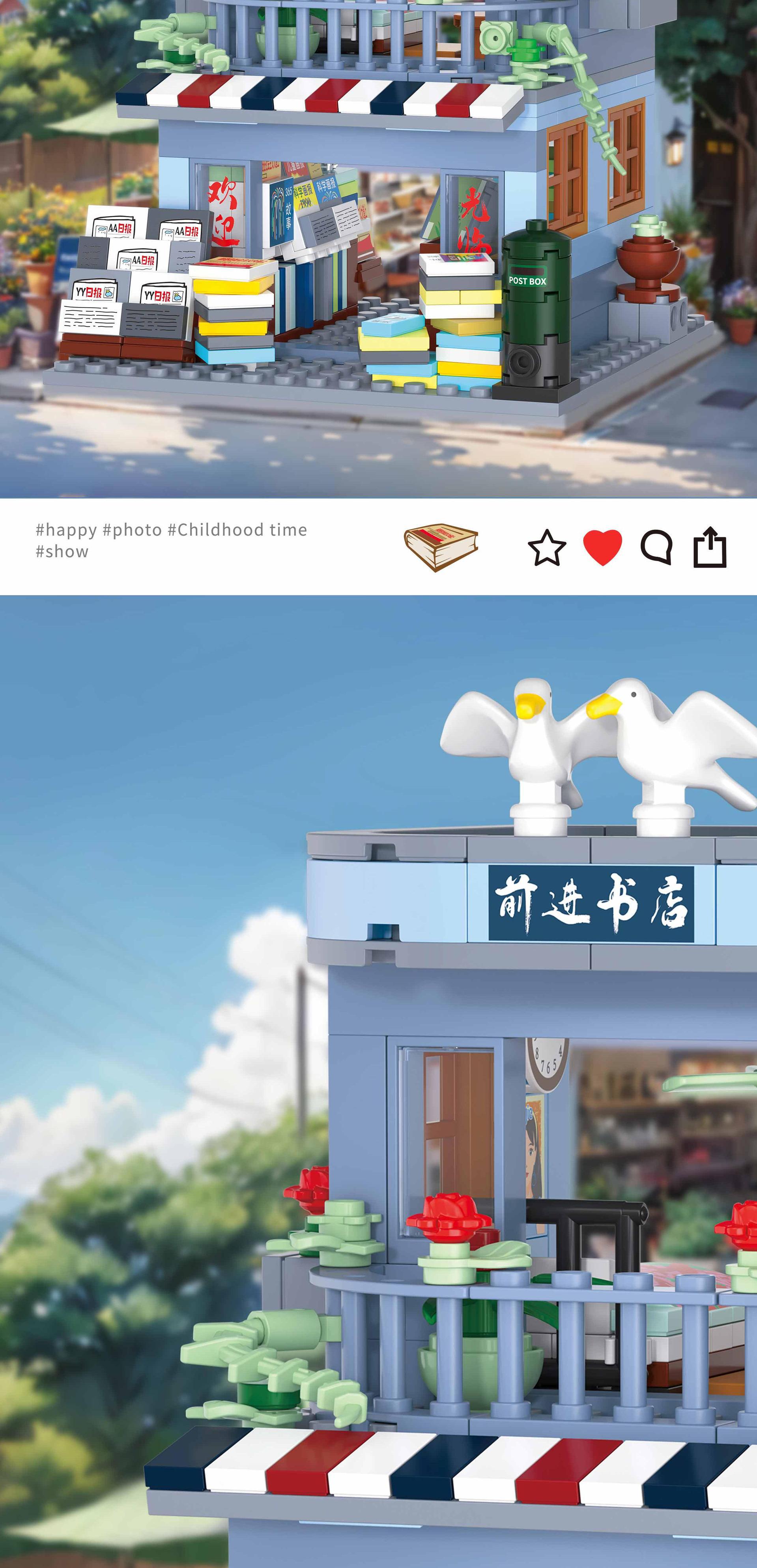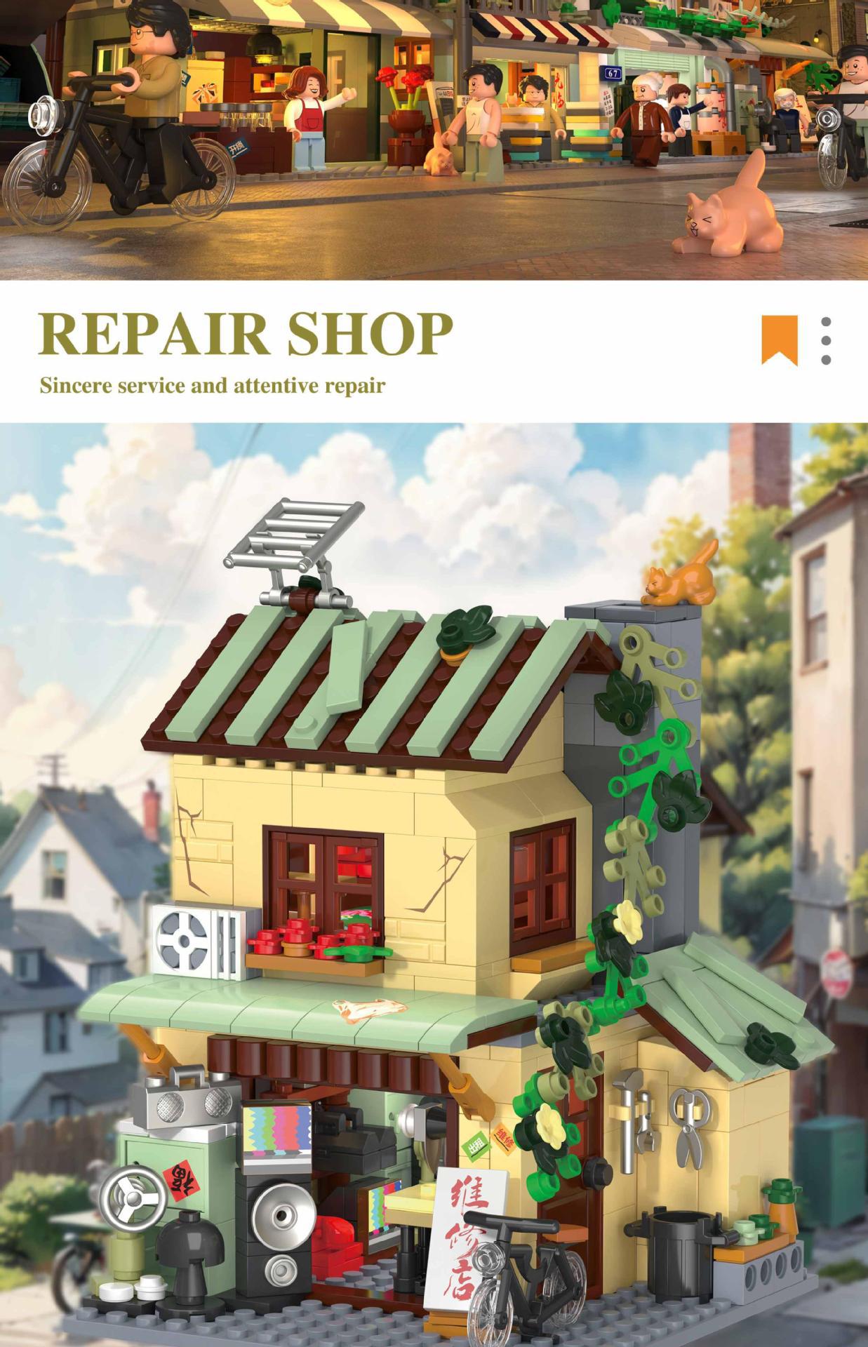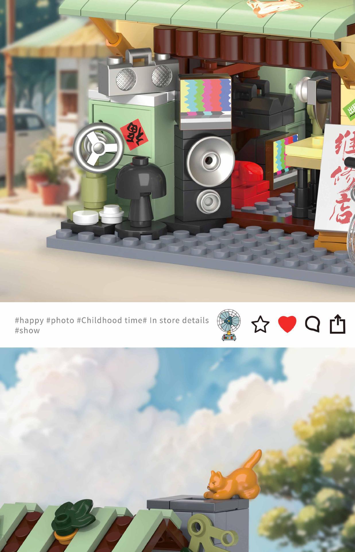 제고 612037-612040 레트로 거리 풍경 추억의 건축물 교육용 블록 어린이 장난감스토어 가기