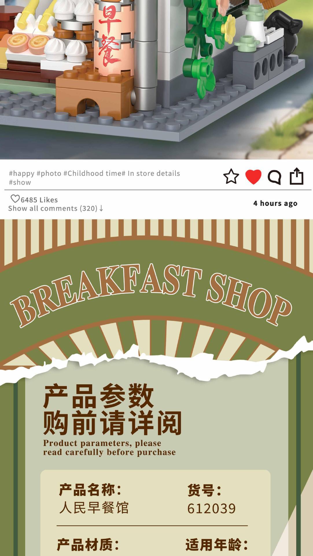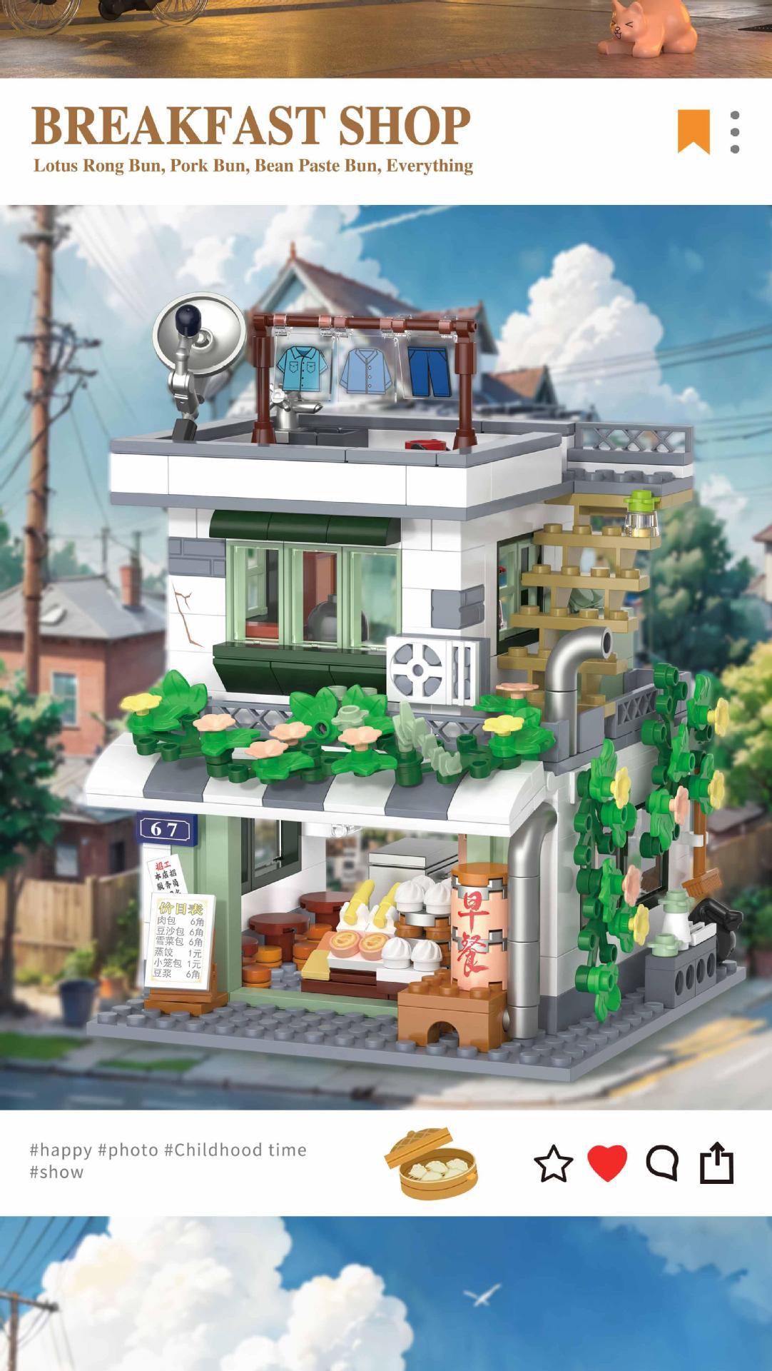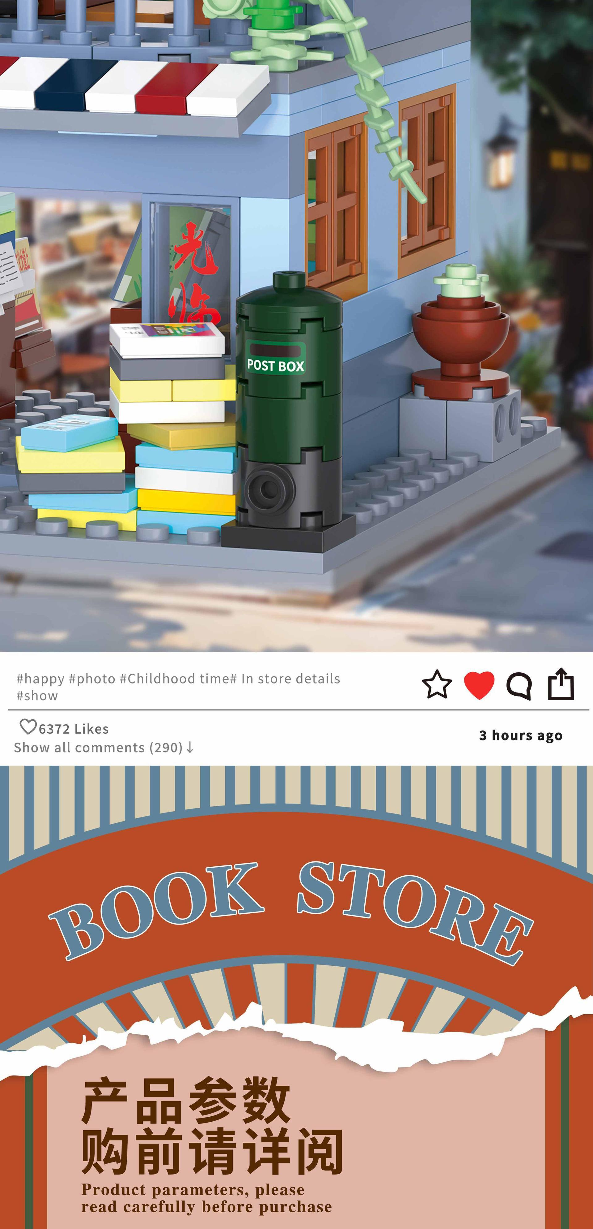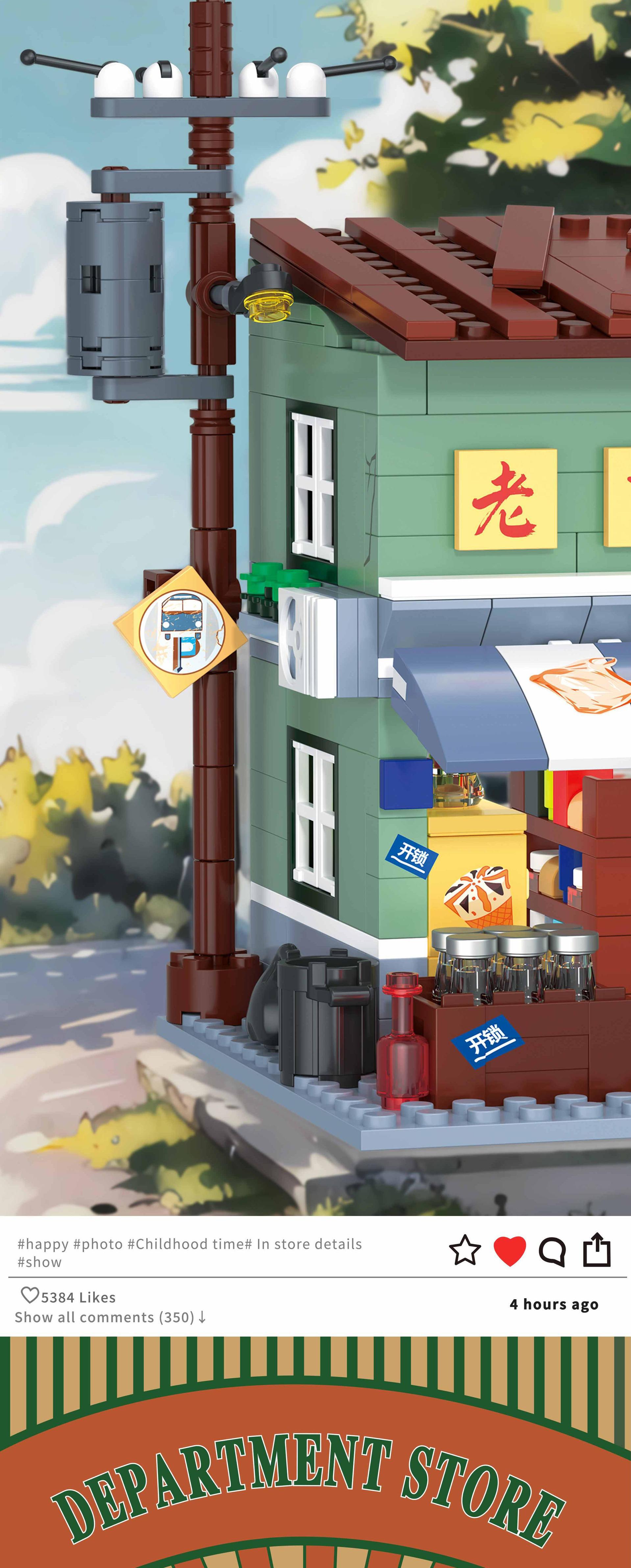 제고 612037-612040 레트로 거리 풍경 추억의 건축물 교육용 블록 어린이 장난감스토어 가기