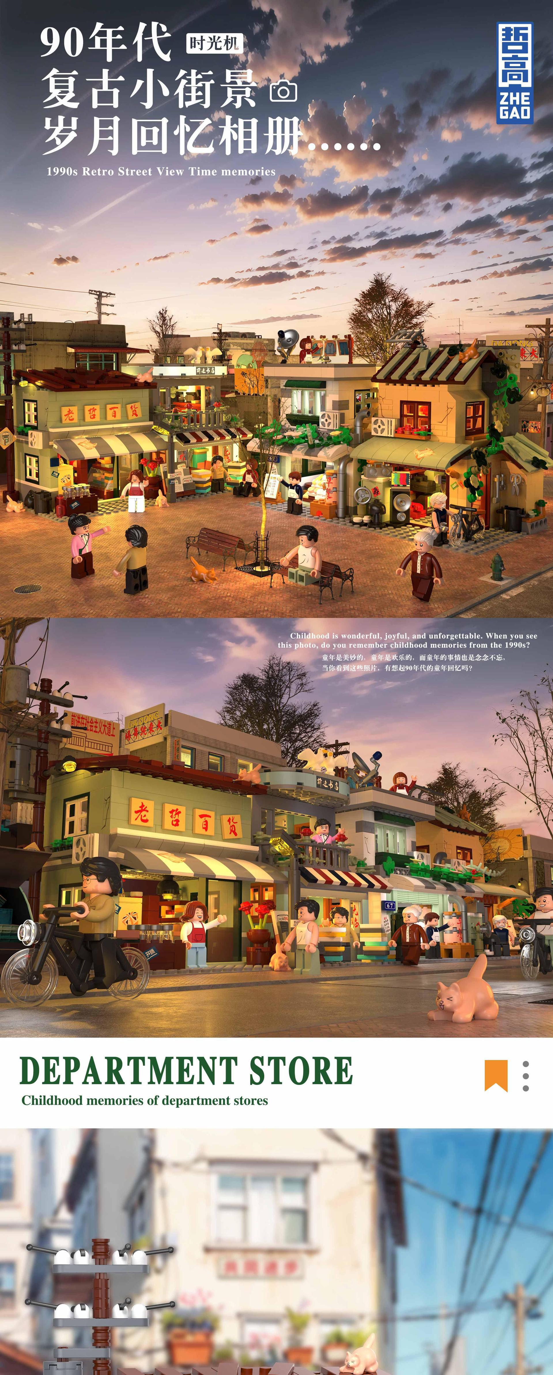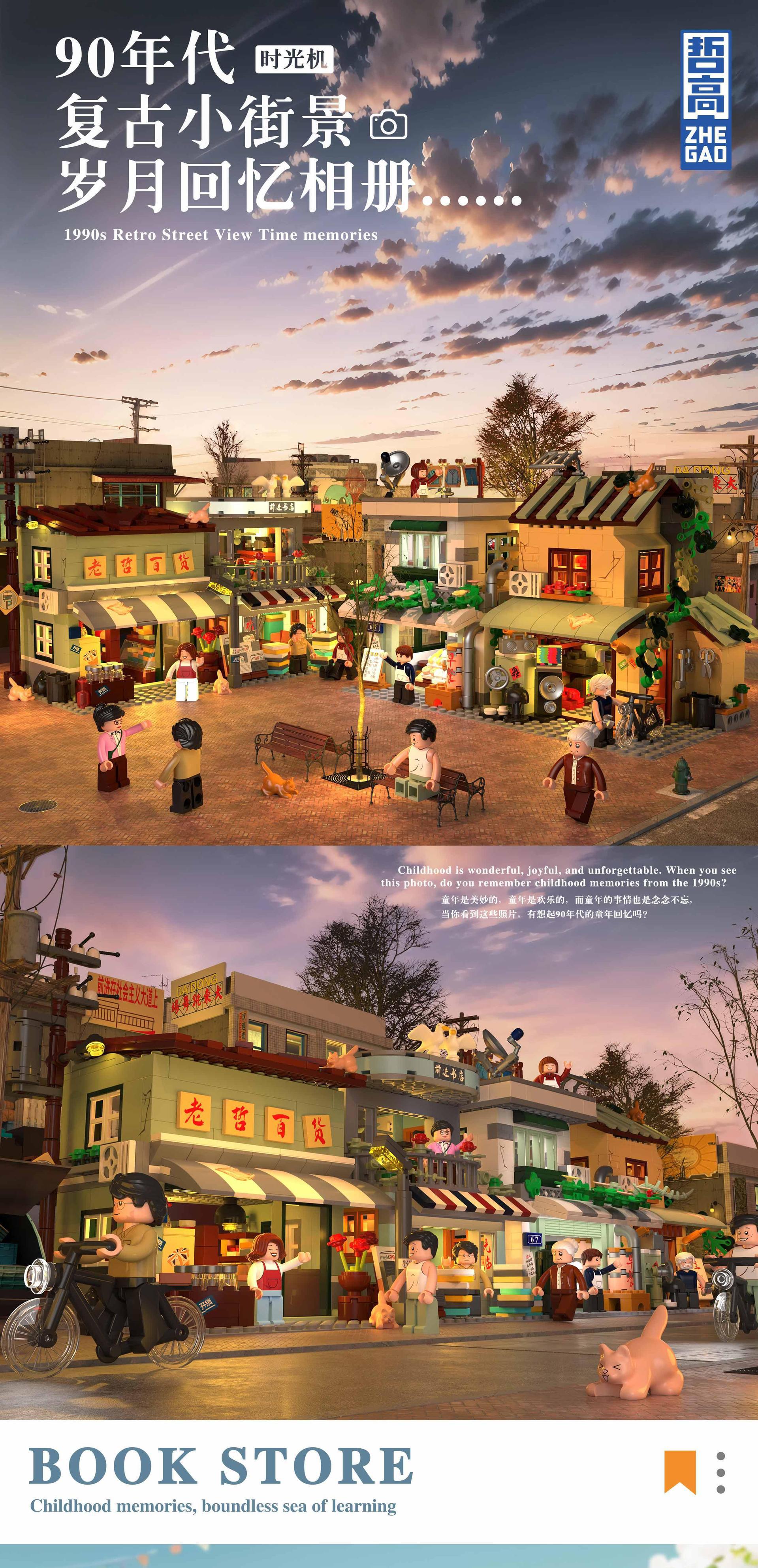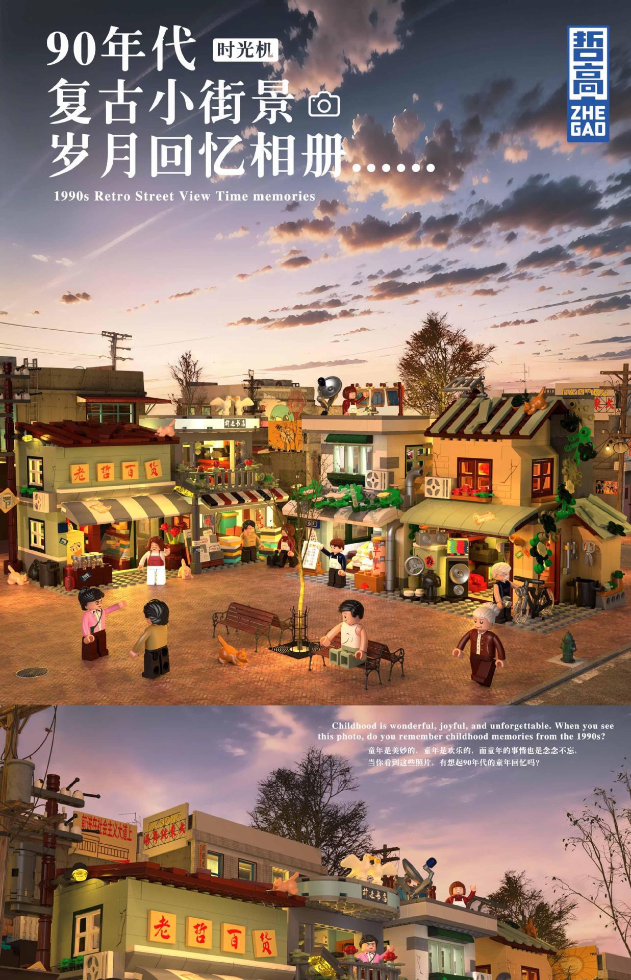 哲高612037-612040复古街景岁月回忆建筑益智积木儿童兼容乐高