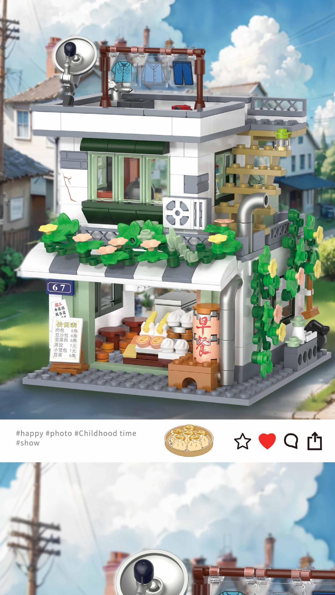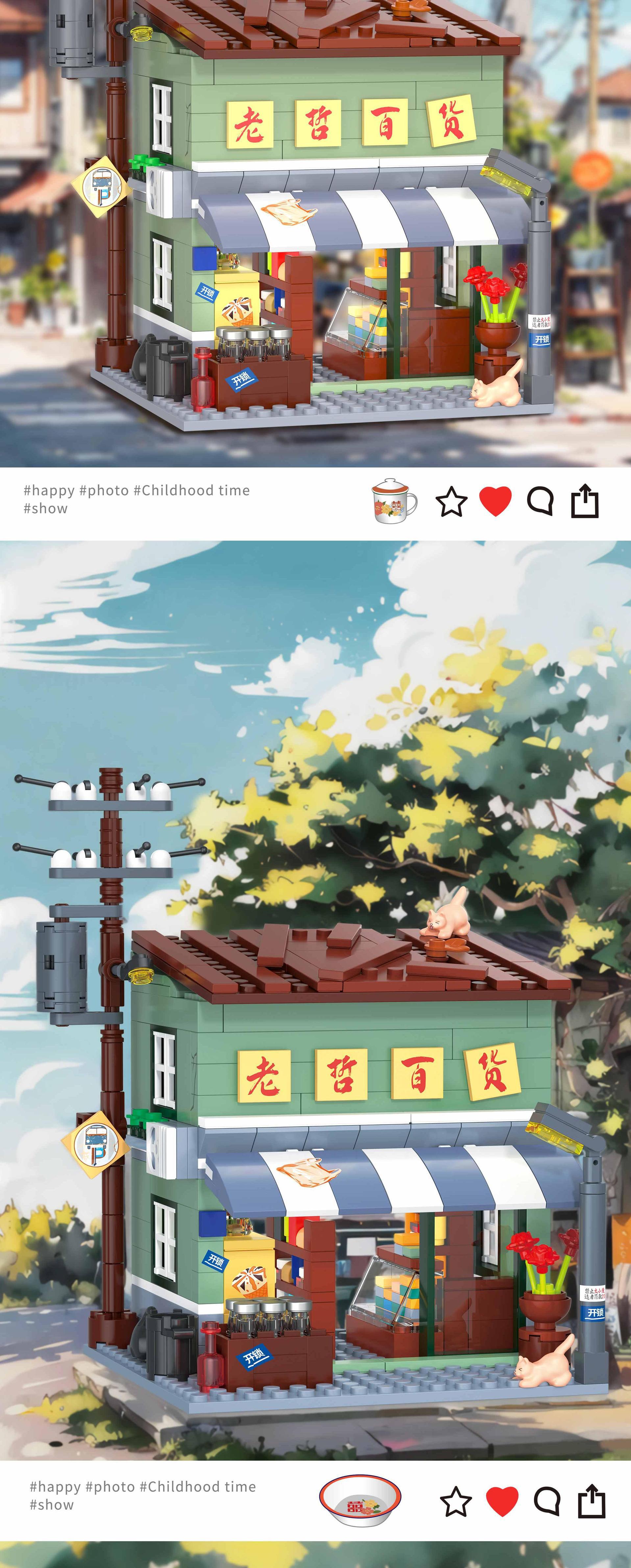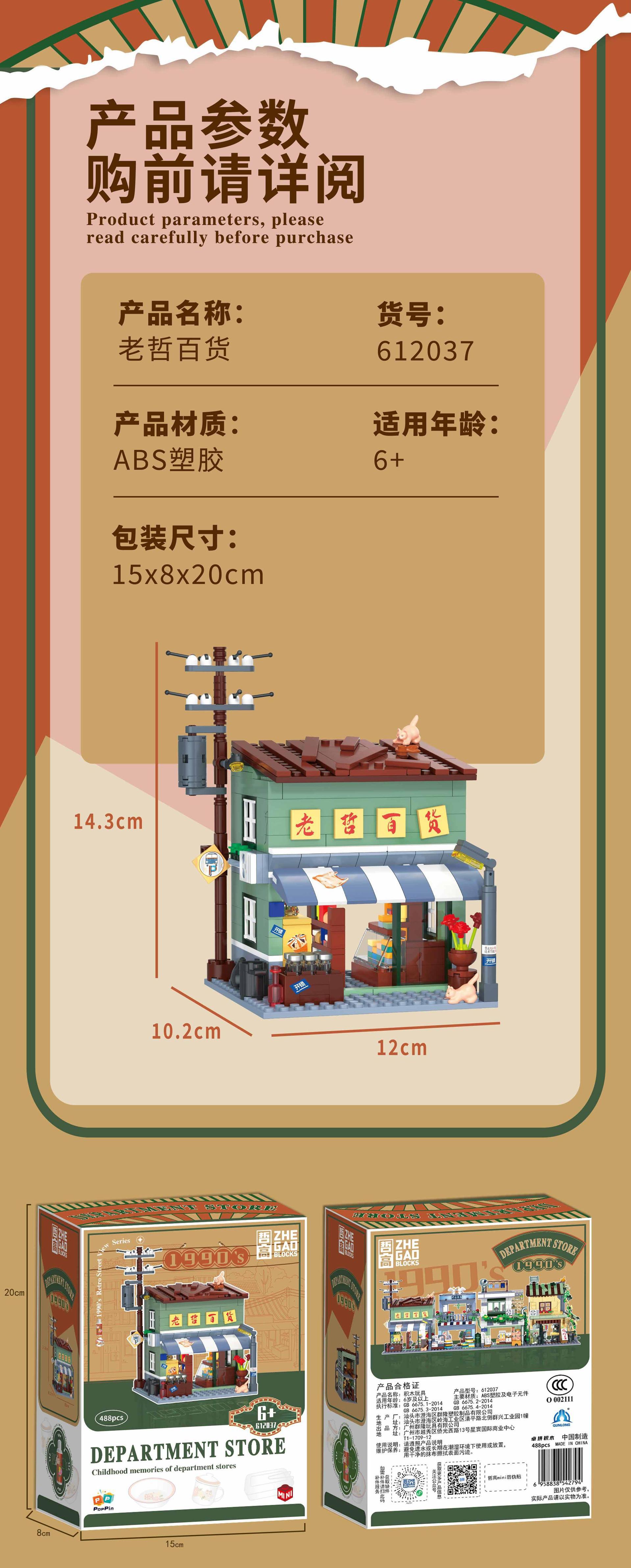 哲高612037-612040复古街景岁月回忆建筑益智积木儿童兼容乐高