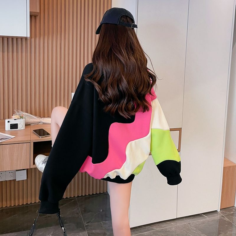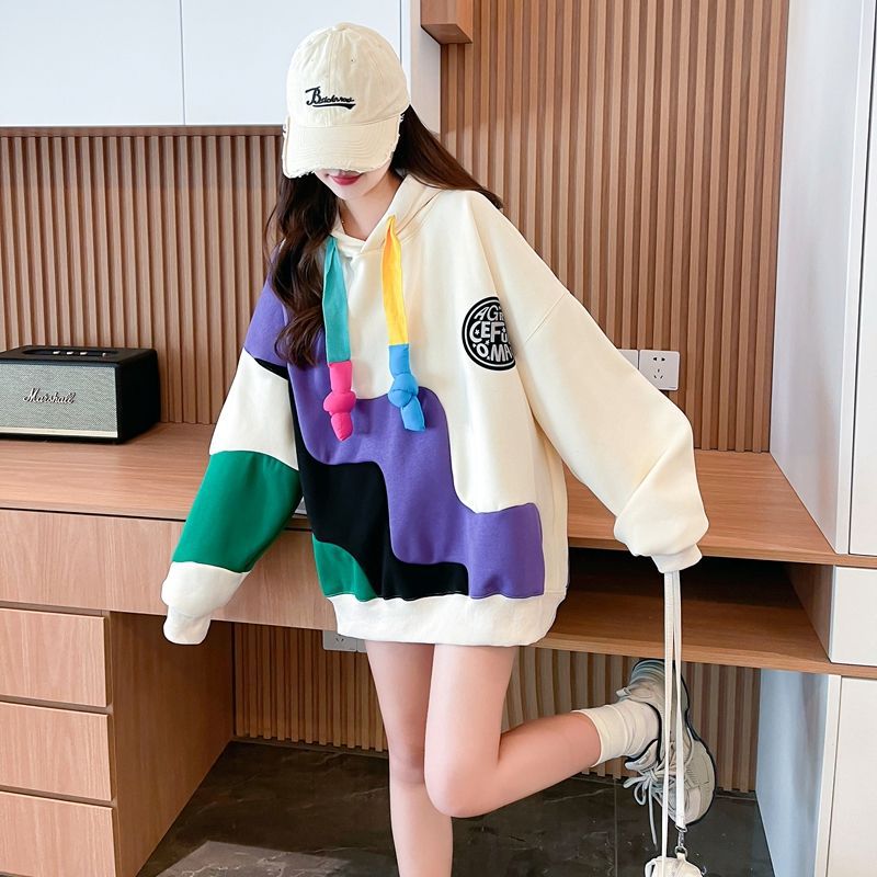 여자 플러스 사이즈 여성 명암 긴 운동복 2025 년 가을 겨울 새로운 기모 두꺼운 느슨한 후드 자켓스토어 가기