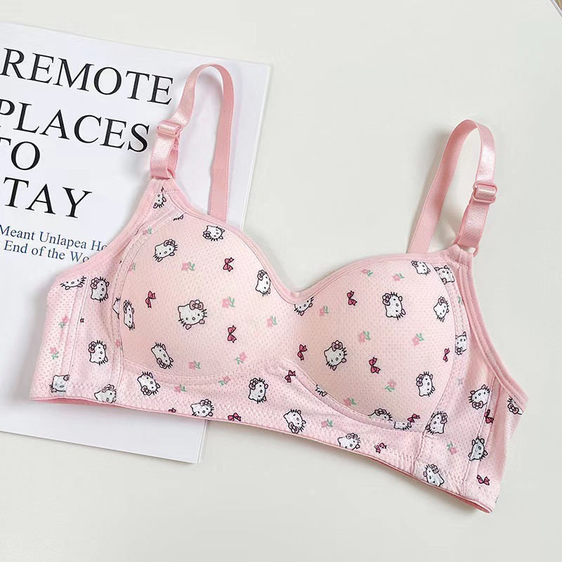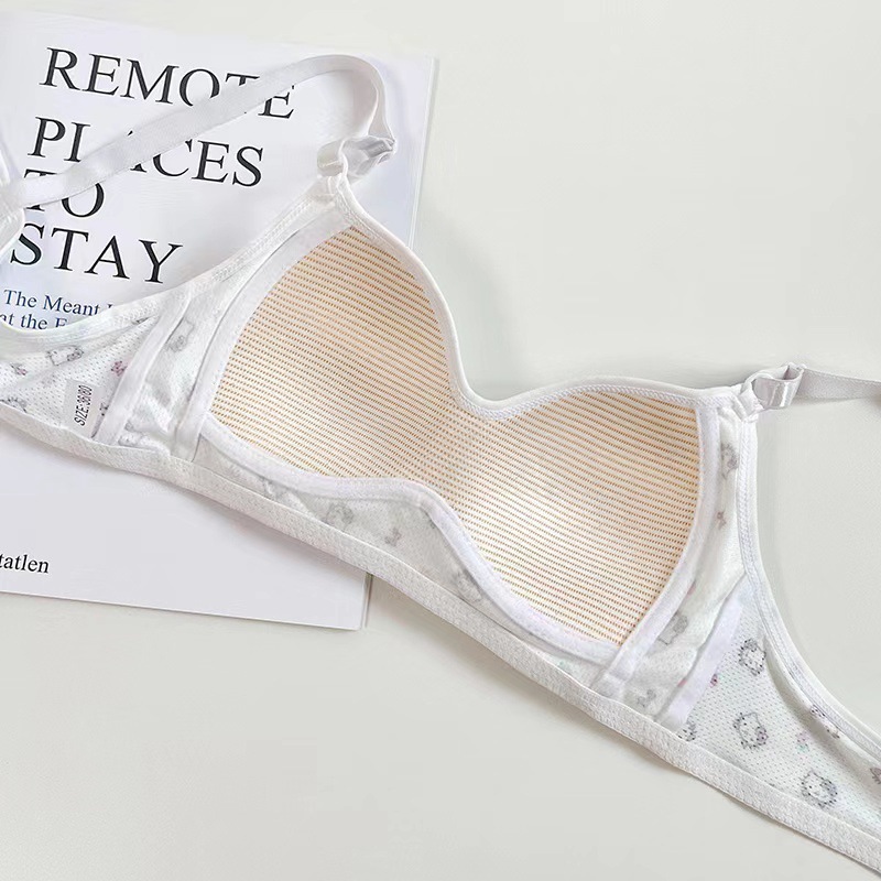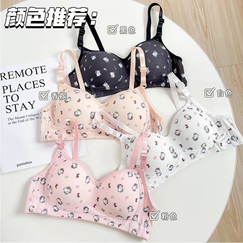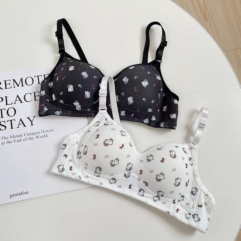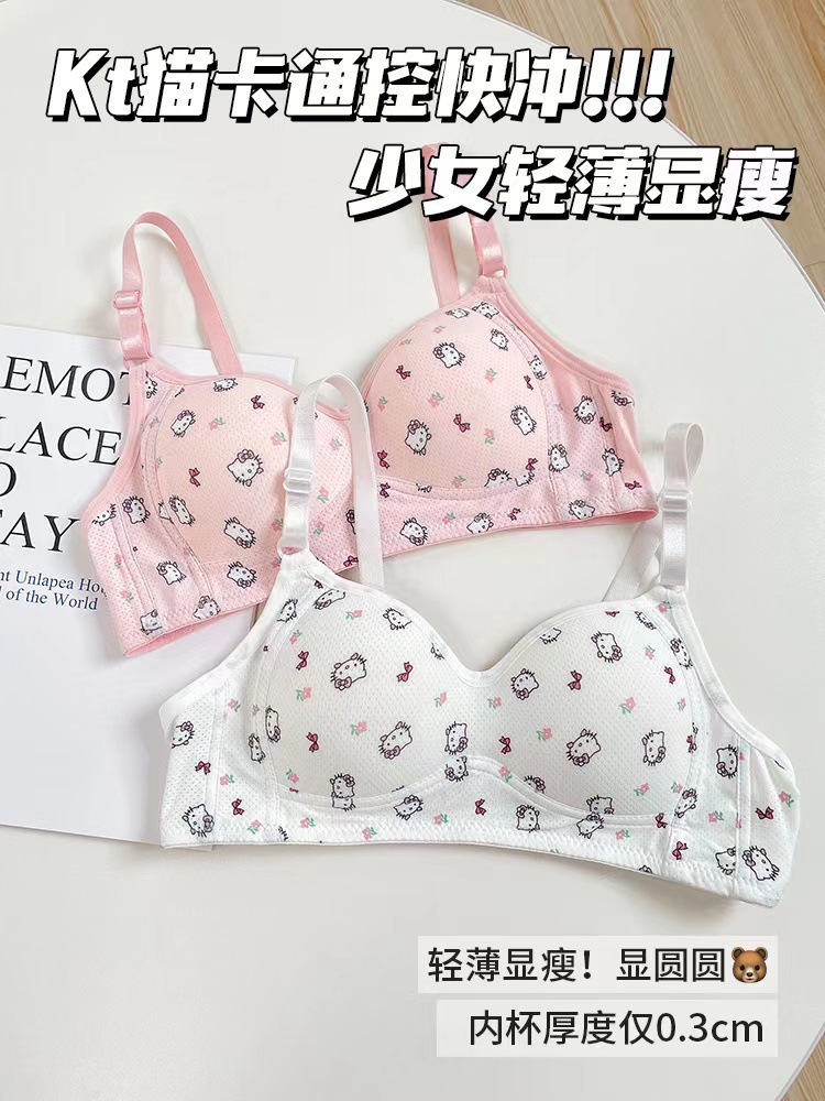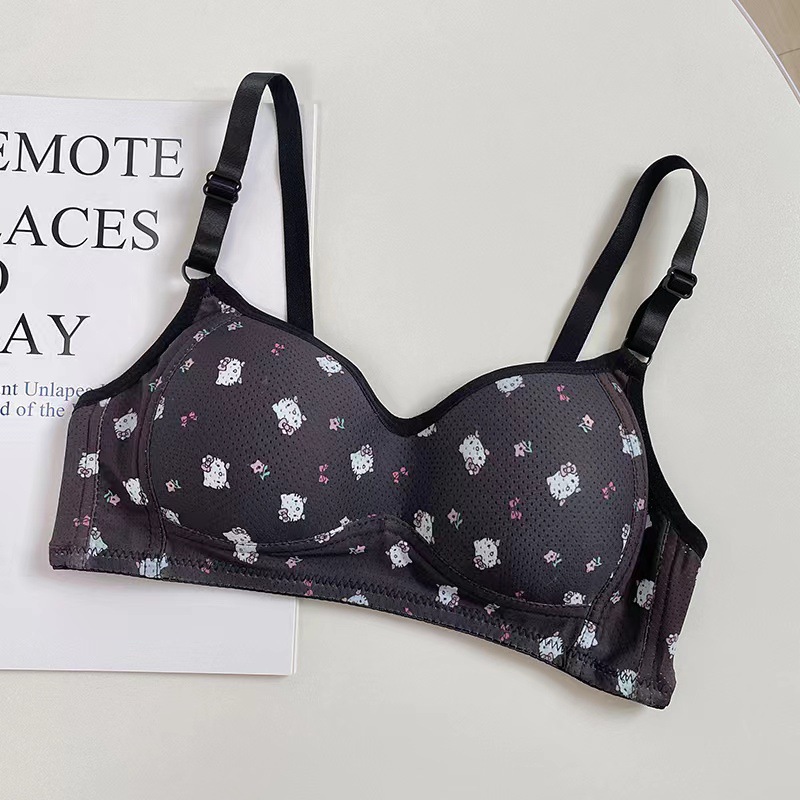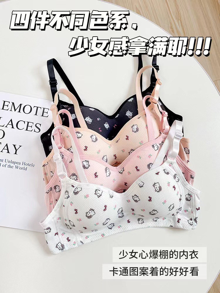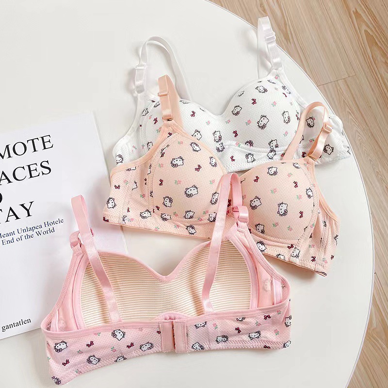 일본식 작은 가슴은 편안한 강철 반지 속옷 소녀 귀여운 만화 고양이 통기성 학생 삼각형 컵 브래지어를 모았습니다.스토어 가기