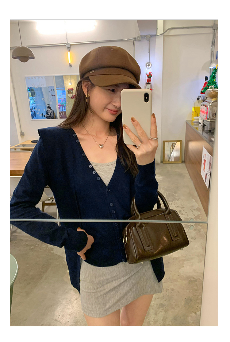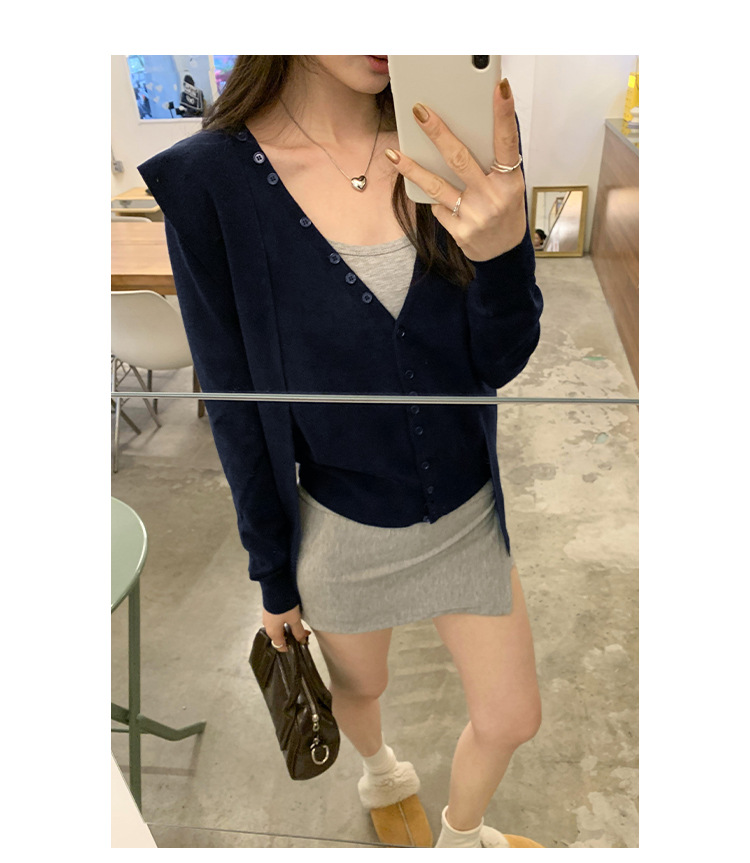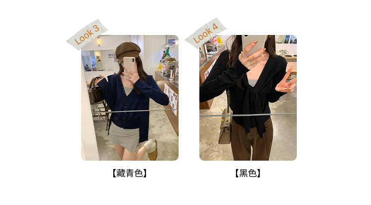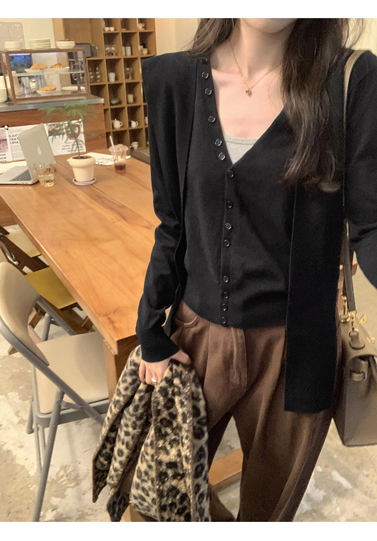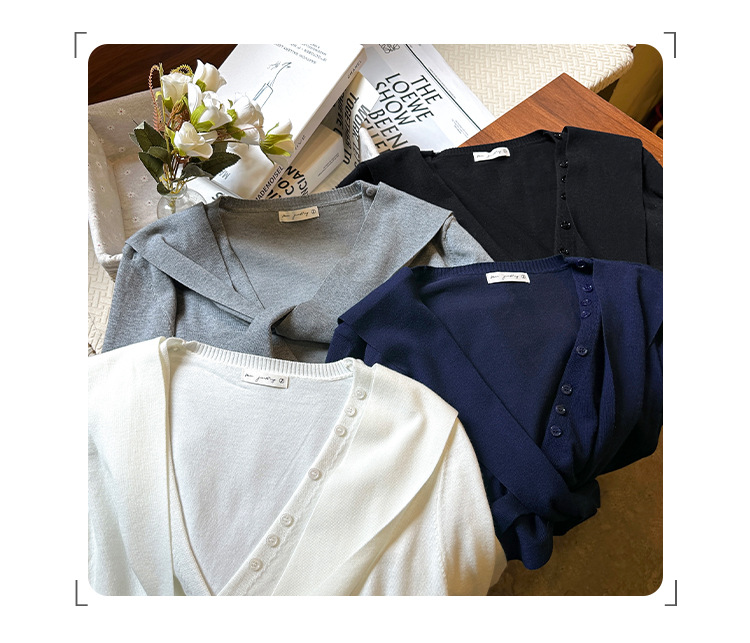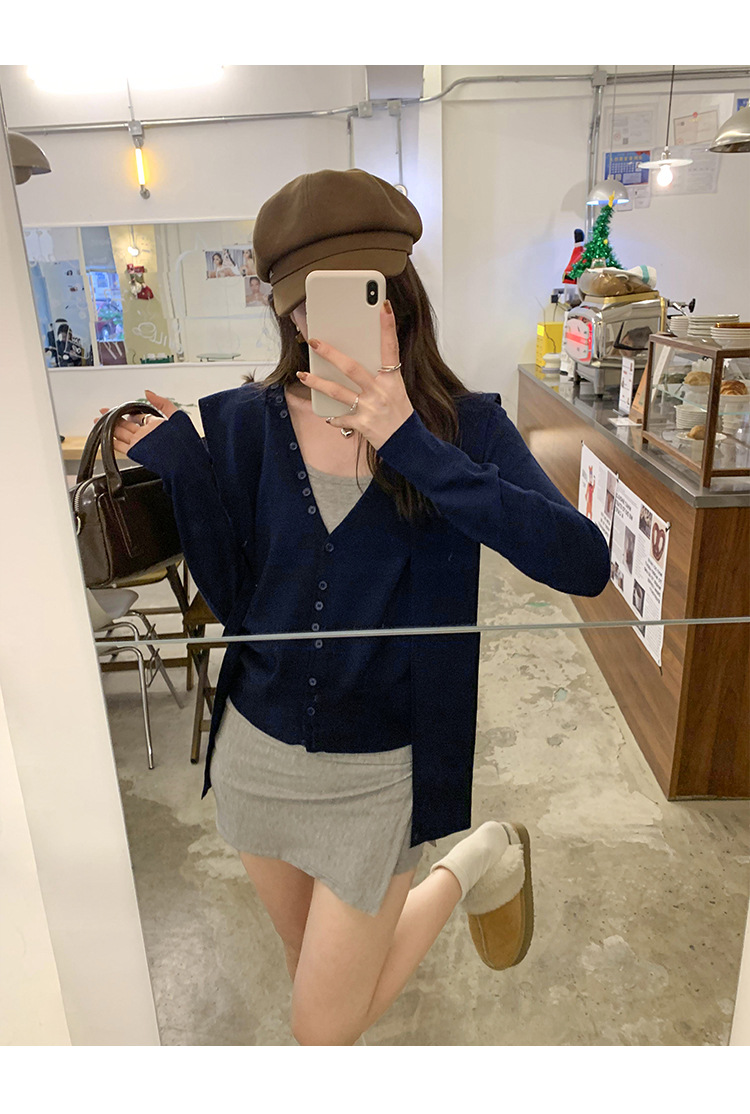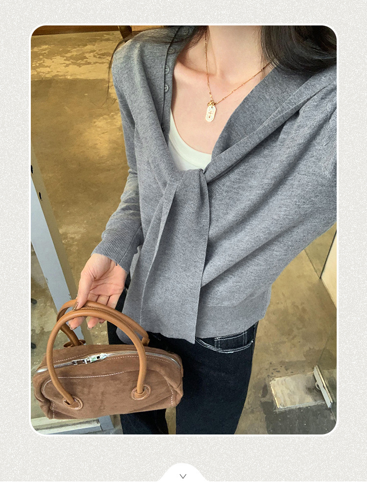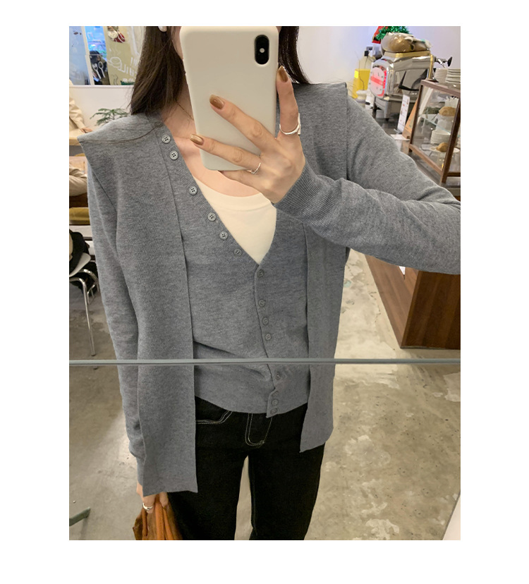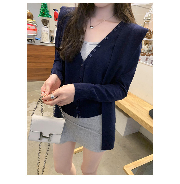 단색 가짜 2 종 목도리 긴팔 양모 니트 카디건 재킷 여성의 2024 년 가을과 겨울 새로운 슬리밍 디자인 센스 탑스토어 가기