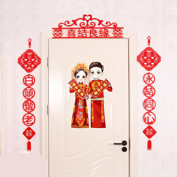 웨딩 용품 꽃 웨딩 룸 장식 패키지 해피 캐릭터 도어 커튼 룸 새 집 커플릿 웨딩 원피스 자오 지저우