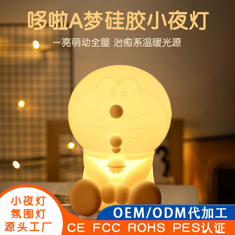 도라에몽 실리콘 야간 조명 3D 징글벨 고양이 만화 캐릭터 터치 램프 침대 옆 터치 센서 디밍 가능 3D 눈 보호 조명스토어 가기