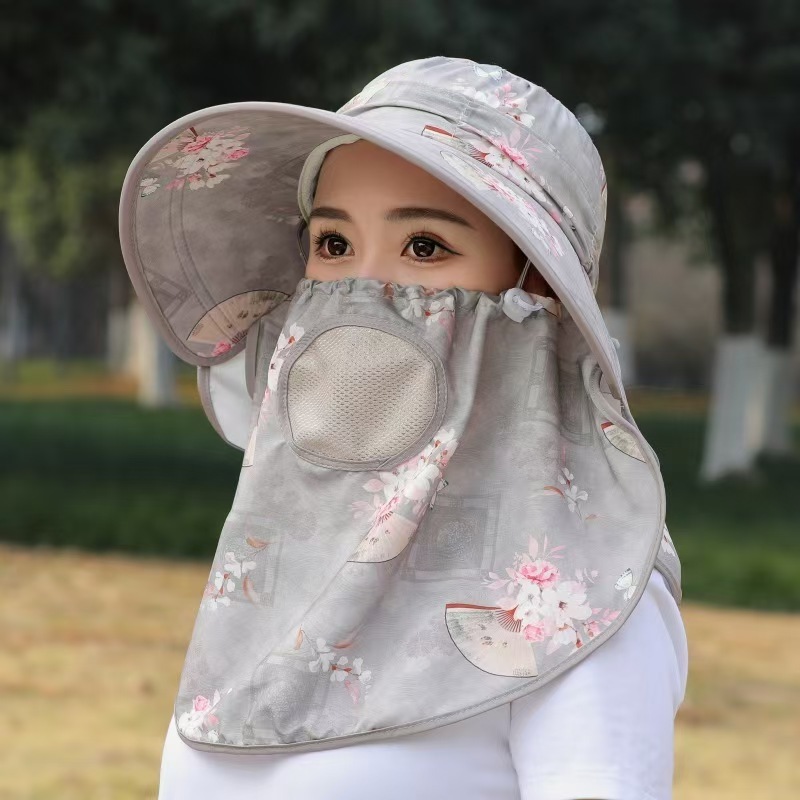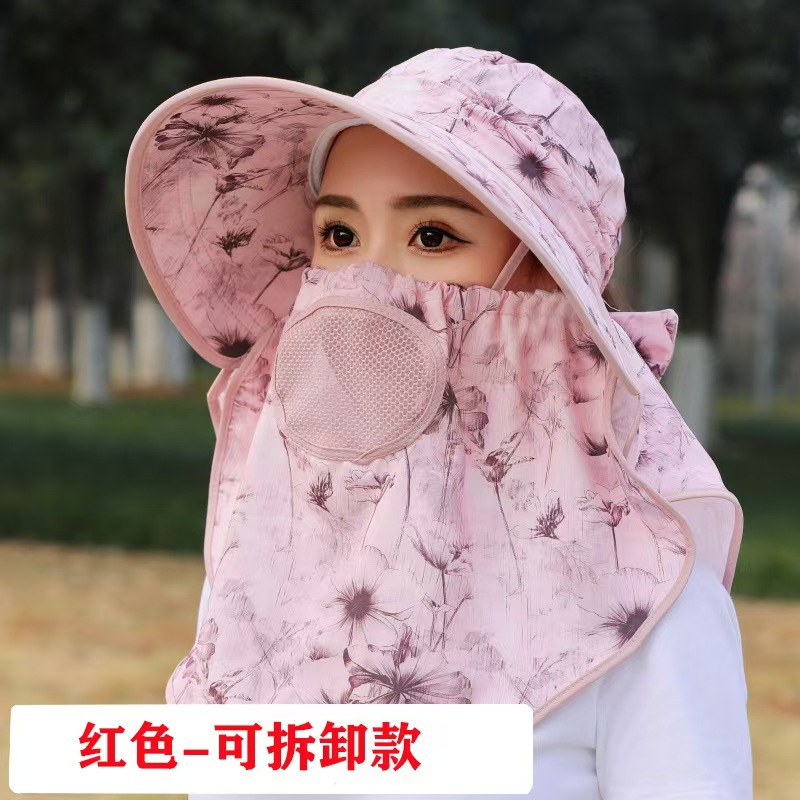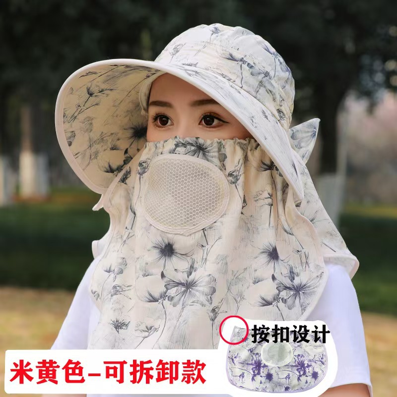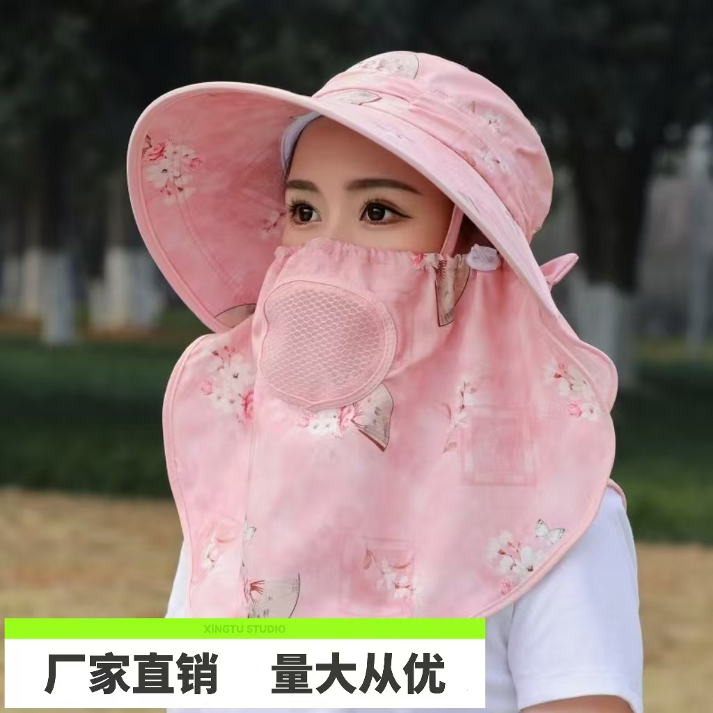 모자 여성 여름 사이클링 햇빛 햇살 모자 야외 종합 보호 차 따기 모자를 따라 얼굴을 가리는 베일