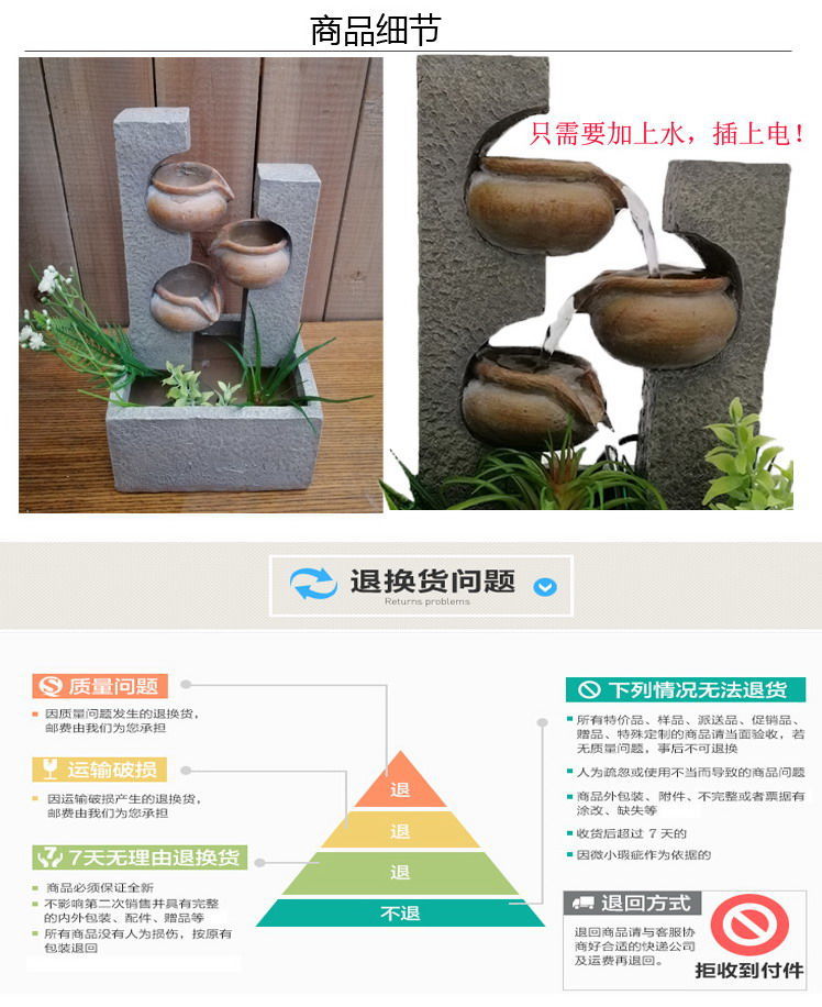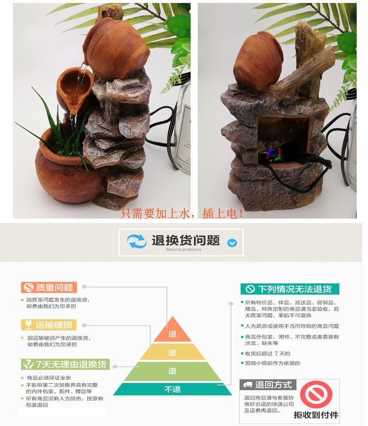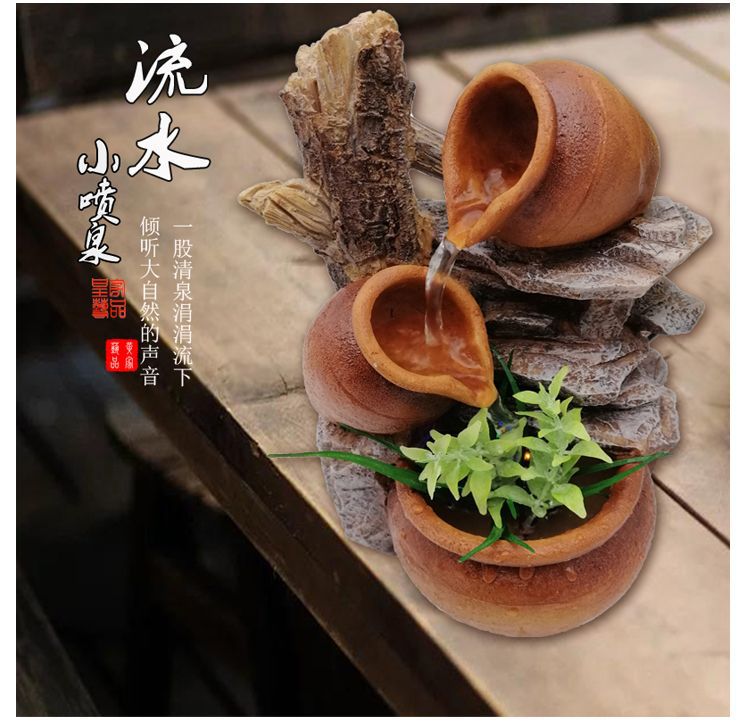 데스크탑 작은 장식품 도자기 냄비 분수 수영장 흐르는 물 홈 발코니 흐르는 물 풍경 장식 야외 흐르는 자오 지저우스토어 가기