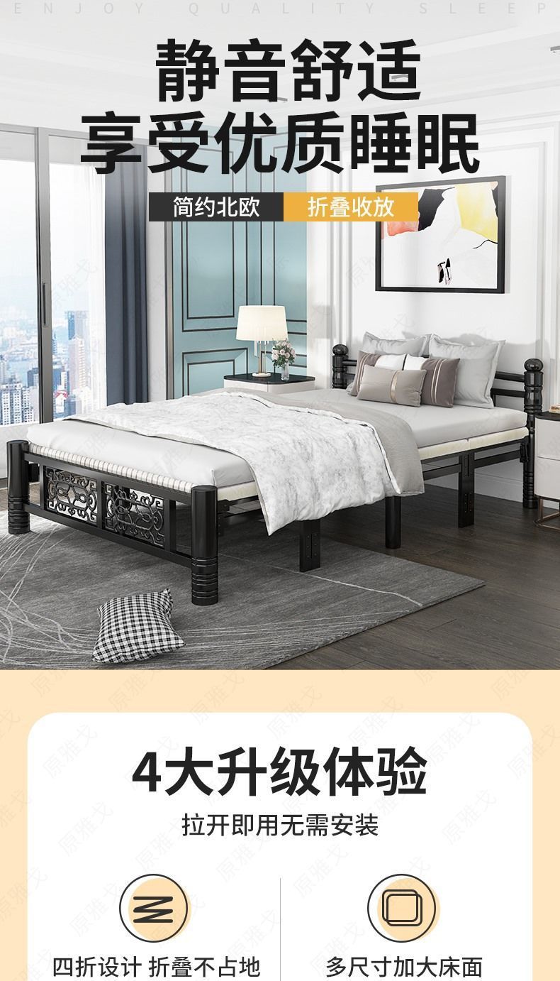 4 접이식 침대 사무실 점심 휴식 철 프레임 나무 침대 싱글 더블 접이식 침대 휴대용 접이식 철 프레임 우드 쿤