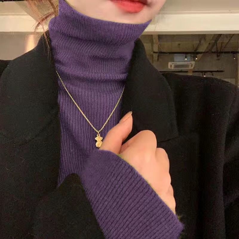 세련된 반 높이 칼라 스웨터 여성용 가을 및 겨울 탑베이스 슬림 핏 긴팔 슬림 핏 미들 칼라 이너 스웨터스토어 가기