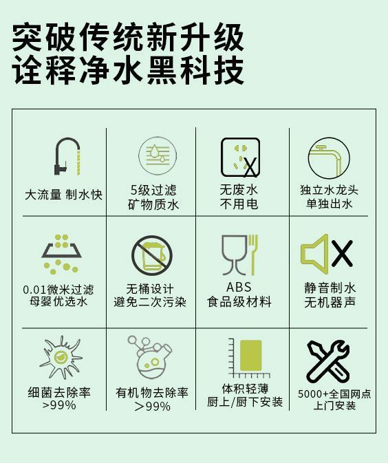 지하오 정수기 5단계 초미세여과기 필터 프리미엄 주방 벽걸이형 수돗물 정수기 직접 마실 수 있는 무걱정 정수기