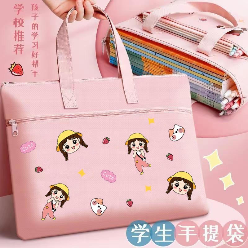 초등학교 학생들이 책 가방을 들고 만화 귀여운 대용량 문서 가방 크램 학교 저장 도서 문구 휴대용 팬 Jue Qin스토어 가기