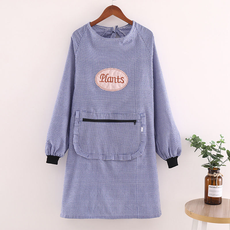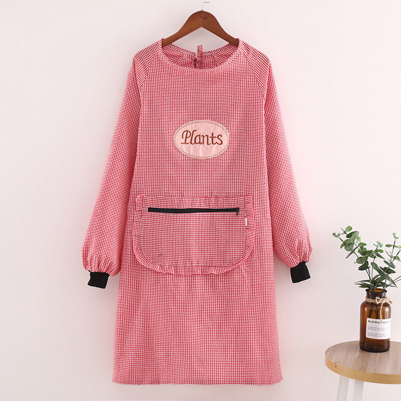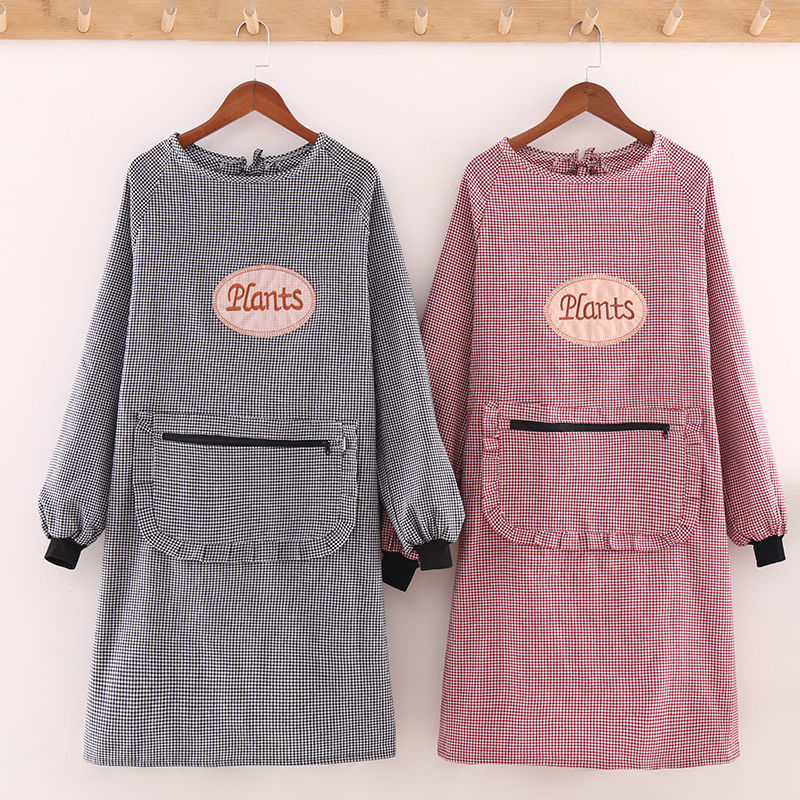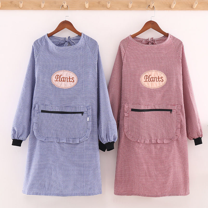 2024 새로운 스타일 작업복 긴팔 앞치마 여성용 주방 가구 작업 노동 보호를위한 스타일리시 코튼 격자 내마모성 완드 스트랩