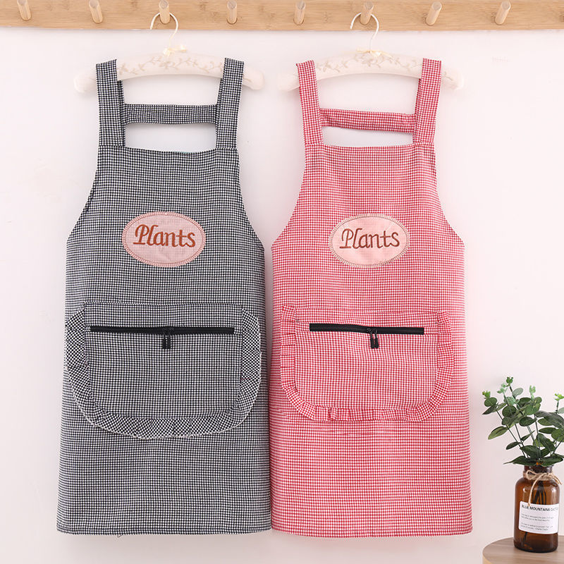 2024 새로운 스타일 작업복 긴팔 앞치마 여성용 주방 가구 작업 노동 보호를위한 스타일리시 코튼 격자 내마모성 완드 스트랩스토어 가기