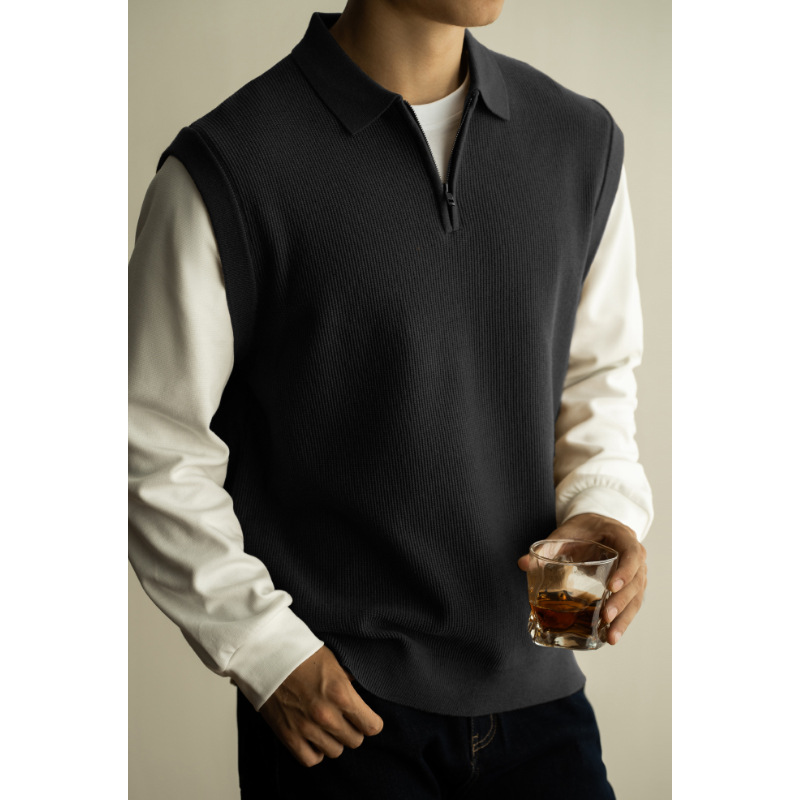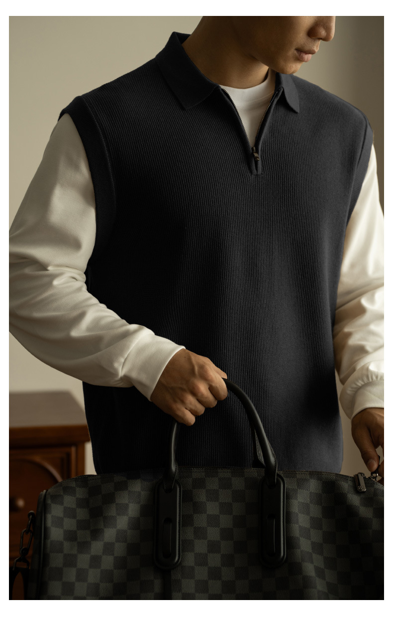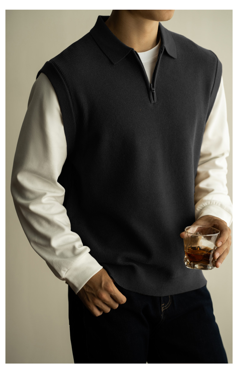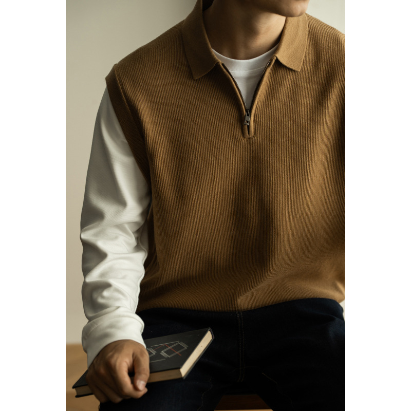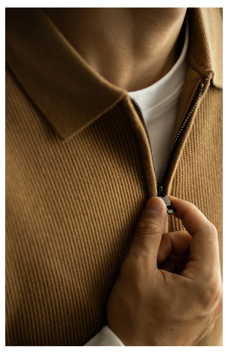 가벼운 비즈니스 스타일 소매 스플라이싱 니트웨어 페이크 투피스 스웨트셔츠 2025 봄 캐주얼 지퍼 라펠 폴로 셔츠 스웨터