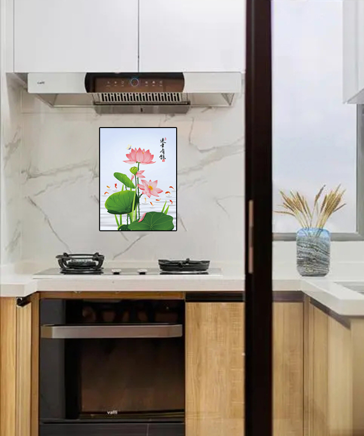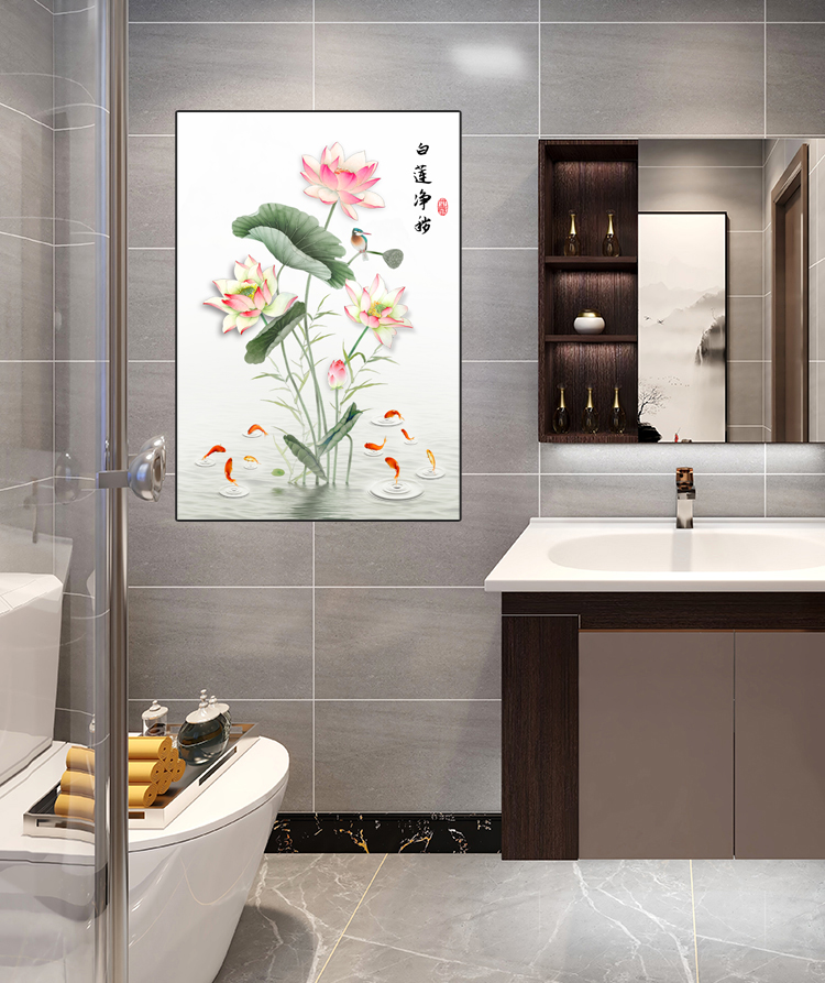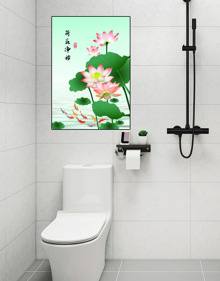 연꽃 잉어 그림 연꽃 정적 더러운 잉어 그림 주방 욕실 방수 자기 접착 그림 직사각형 페이스트 Jue Qin
