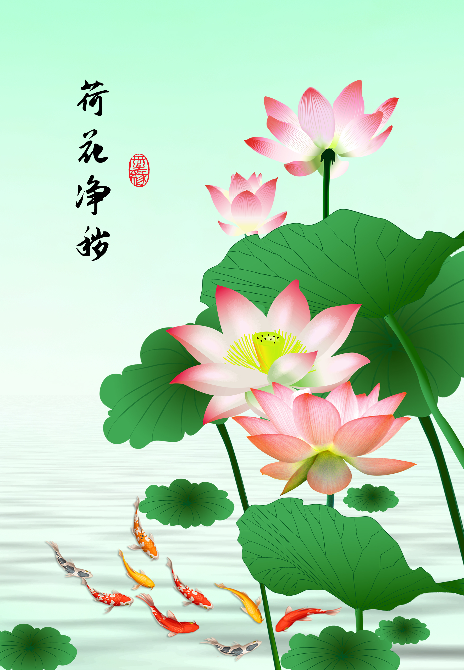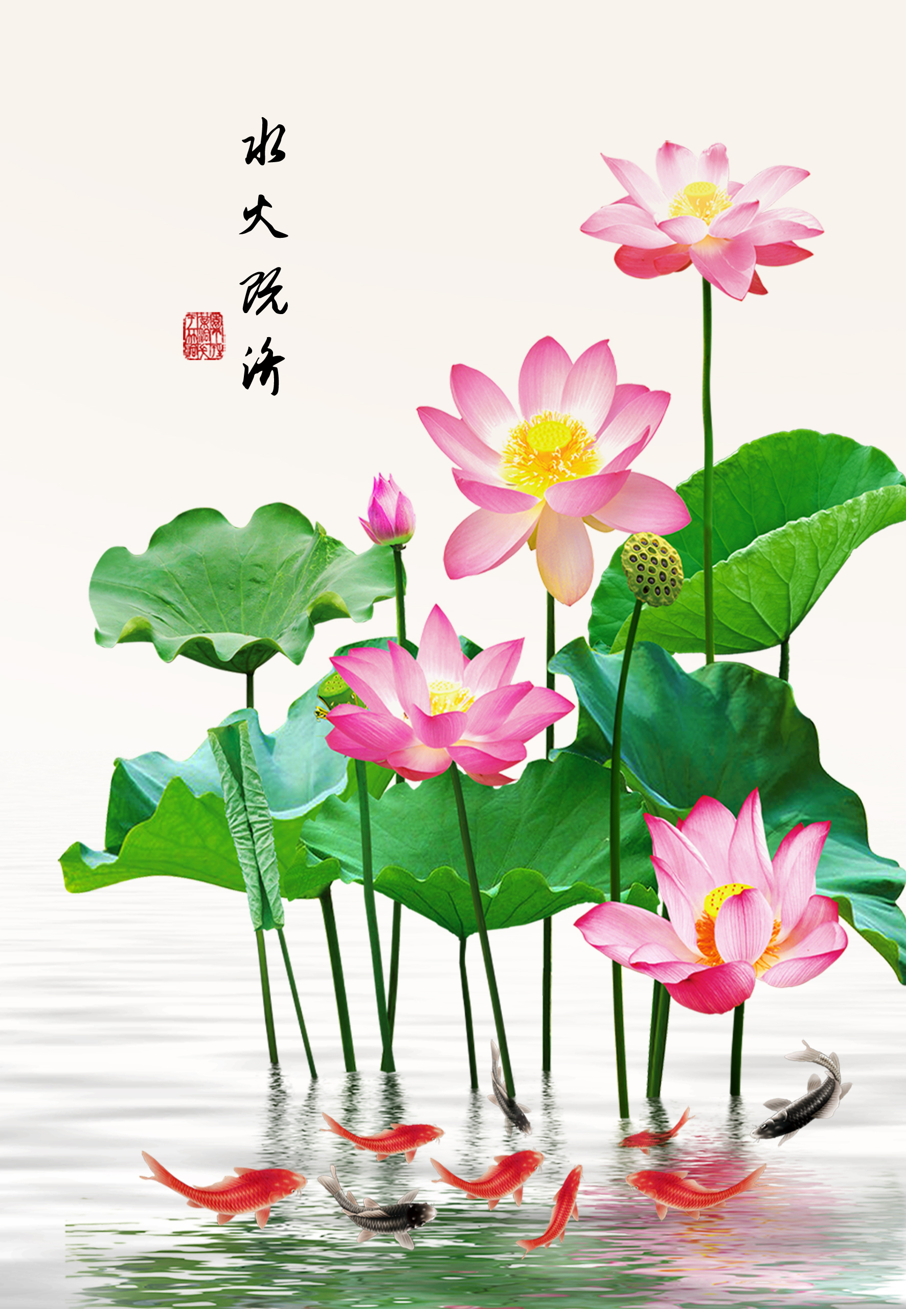 연꽃 잉어 그림 연꽃 정적 더러운 잉어 그림 주방 욕실 방수 자기 접착 그림 직사각형 페이스트 Jue Qin스토어 가기